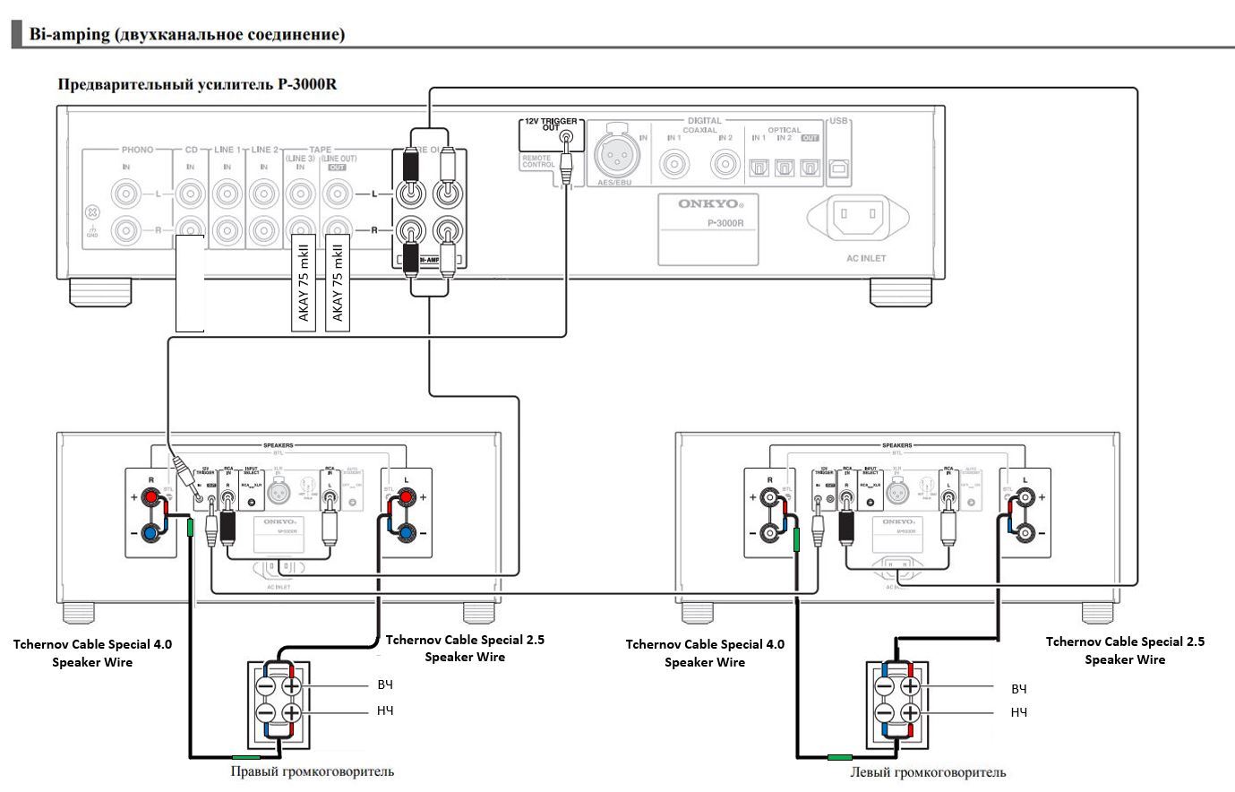 вот мой реальный пример bi-amp в мануале