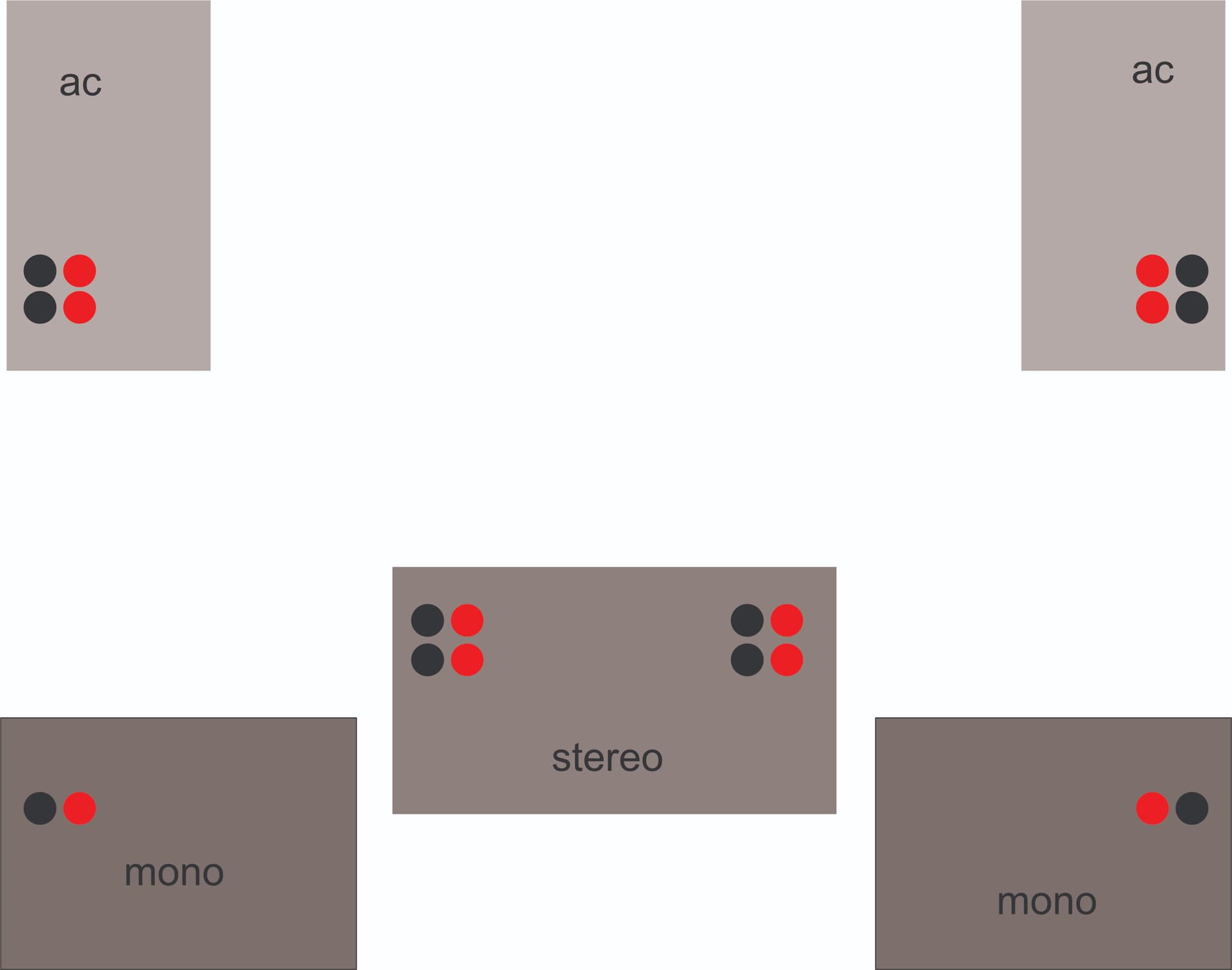 Одинаковые мощники плюс активный кроссовер.