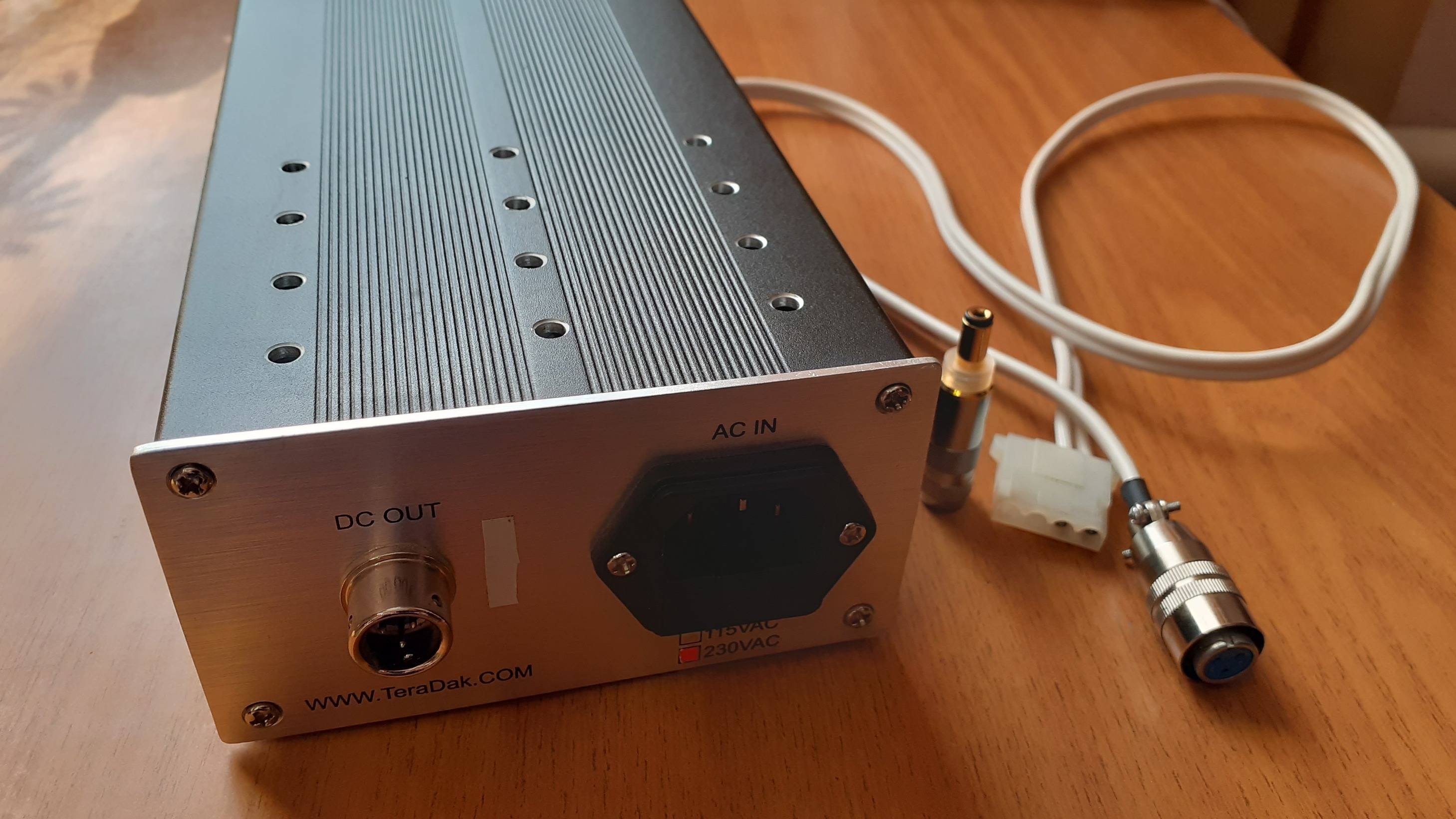 Сейчас выставлен на 5в, можно выставить и на 12в. Использовал его с платой PPA V2, поэтому поставил разъем молекс, но разъемчик DC Oyaide 5.5 отдаю в комплекте. Кабель медный Qed.