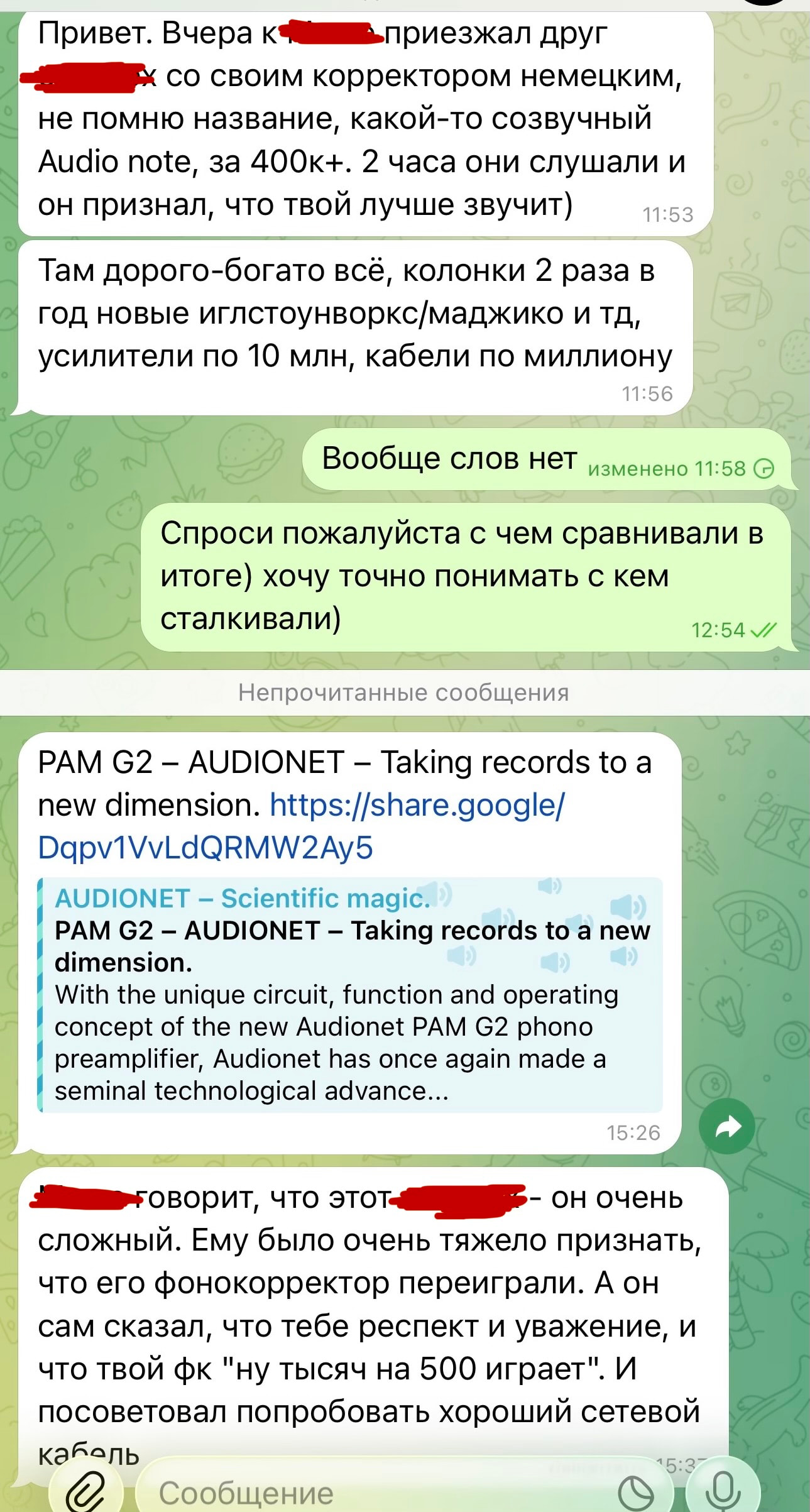 А чему тут удивляться - Audionet же не ламповый и в нем куча мелких деталек сквозь которые слабенькому звуку с головки очень трудно пробиться