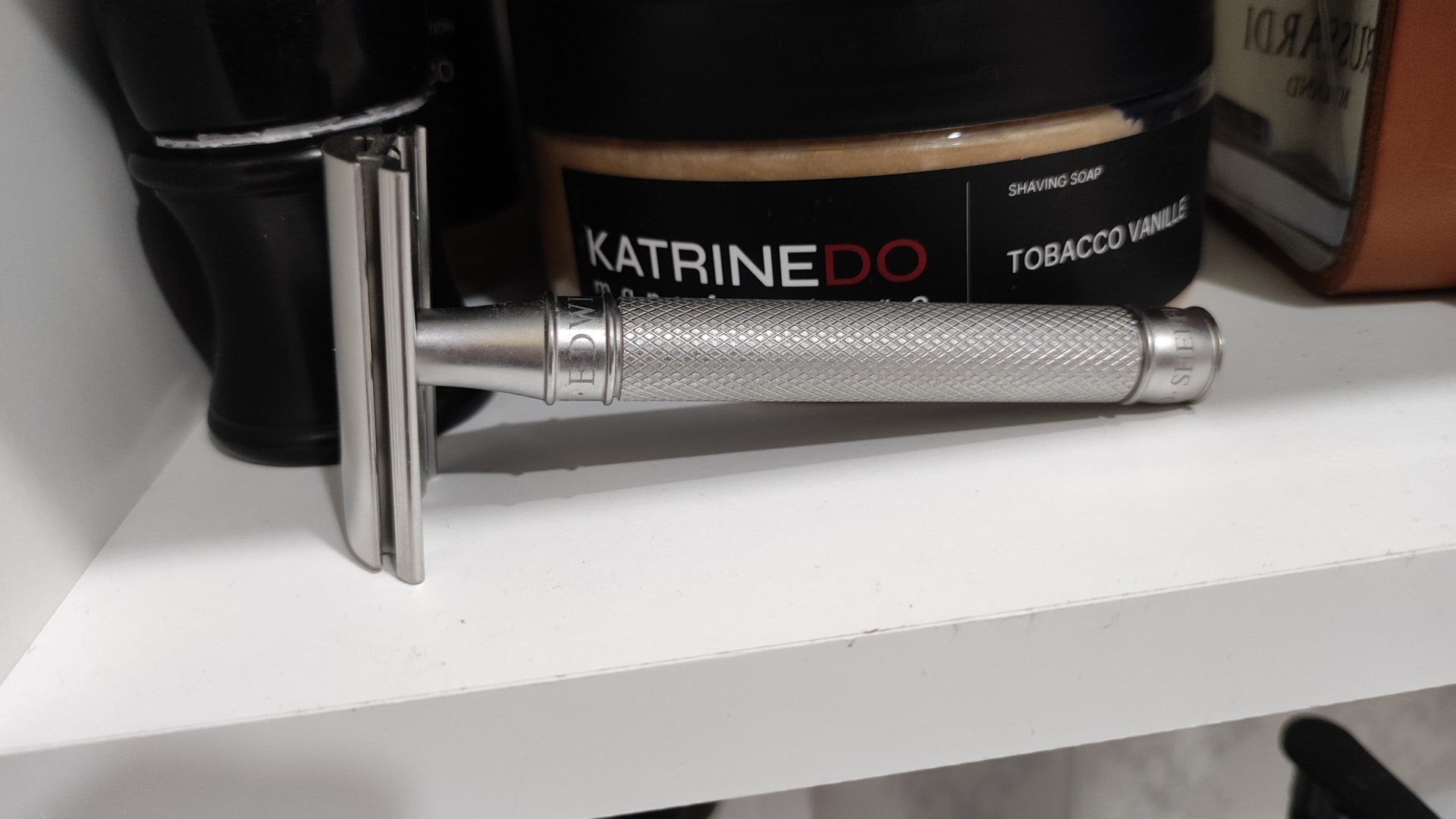 Edwin Jagger - оччень хорошая бритва. Но у меня большие руки и ручка - немного тоненкая и не совсем удобная. То же самое и с Feather-ом. Я предпочитаю бритвы с масивными и большими ручками. Такие как Rockwell и Muhle на моим картинкам. Ну и как Merkur Futur. Сейчась для разнообразия бреюсь поочередно с двумя бритвами - Feather или Muhle Rocca. Rocca - очень интересная бритва. Ее голова не так агресивная и опасная как R41, но при том и не так мягкая и нежная, как R89. Занимает промеждуточное положение. При этом бреет очень ефективно. Merkur 34 Slant тоже очень интересная бритва. Ее голова скошенная, т.е. “скрученная”, и лезвие бреет под наклоном - ефективно, но при том бритва - не агресивная. Только ручка для меня - несколько короткая. Она както теряется в горсти руки, когда я держу ее. Надо держать ее за самой нижней части ручки кончиками пальцев.