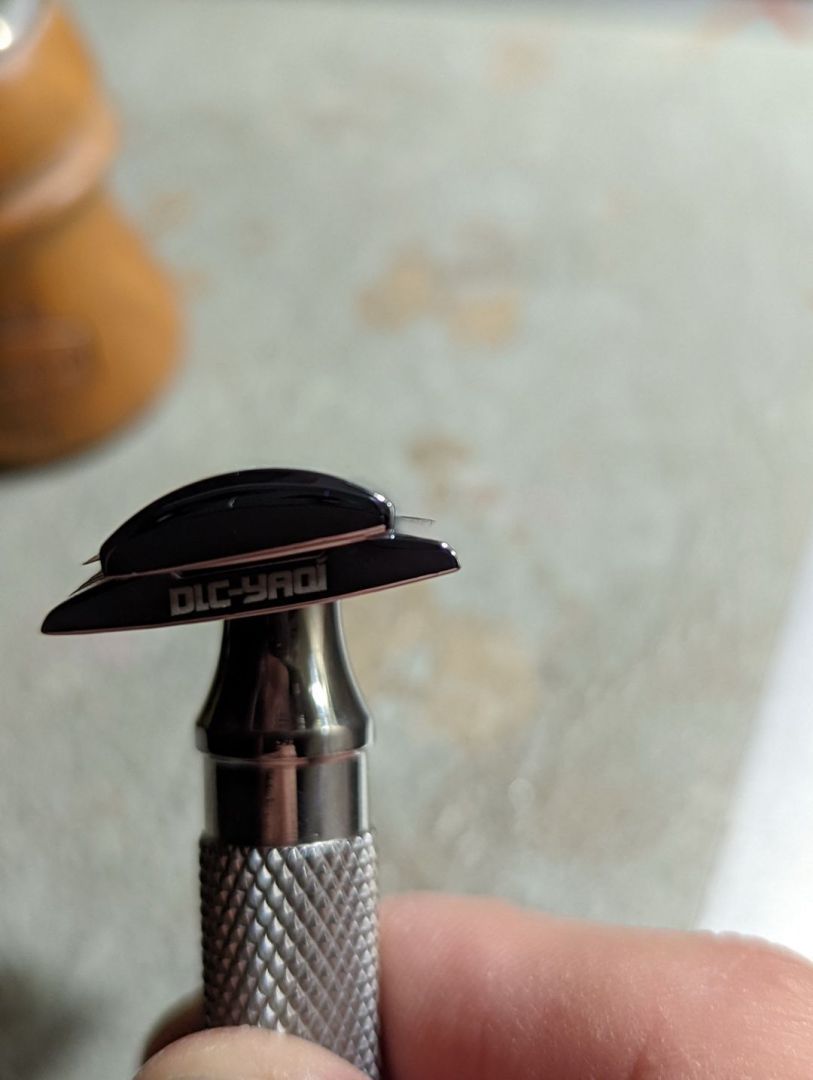 Это Yaqi aggressive slant. Зазор между плитами очень большой и можно подобрать угол, чтобы нижняя плита не касалась вашей кожи во время бритья. Придется, возможно, приноровиться к изгибу лезвия, так как это косорез. Посмотрите на эту фотку: