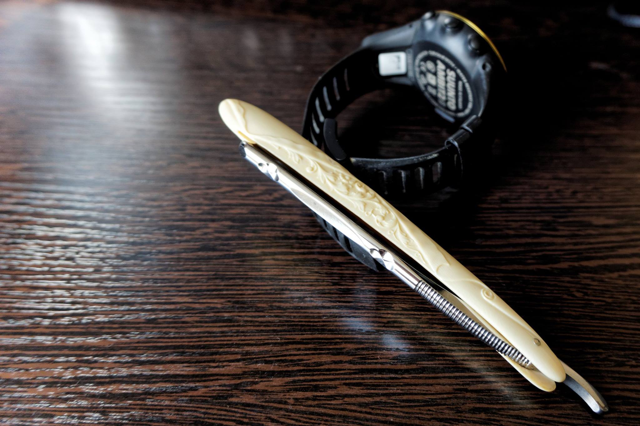 Для контуров же удобнее всего использовать Shavette они же Шаветки, типа такой. Как опаска, только со сменными лезвиями