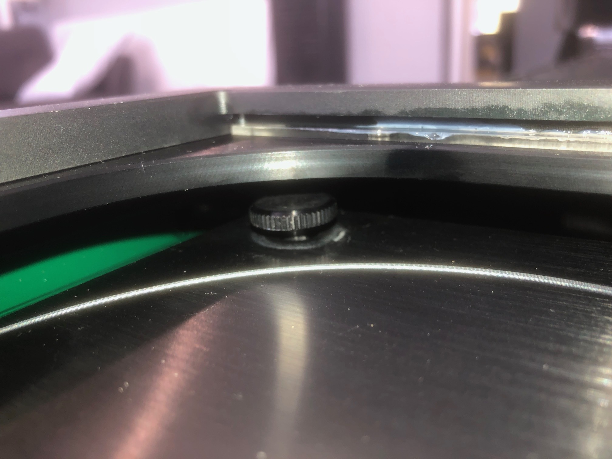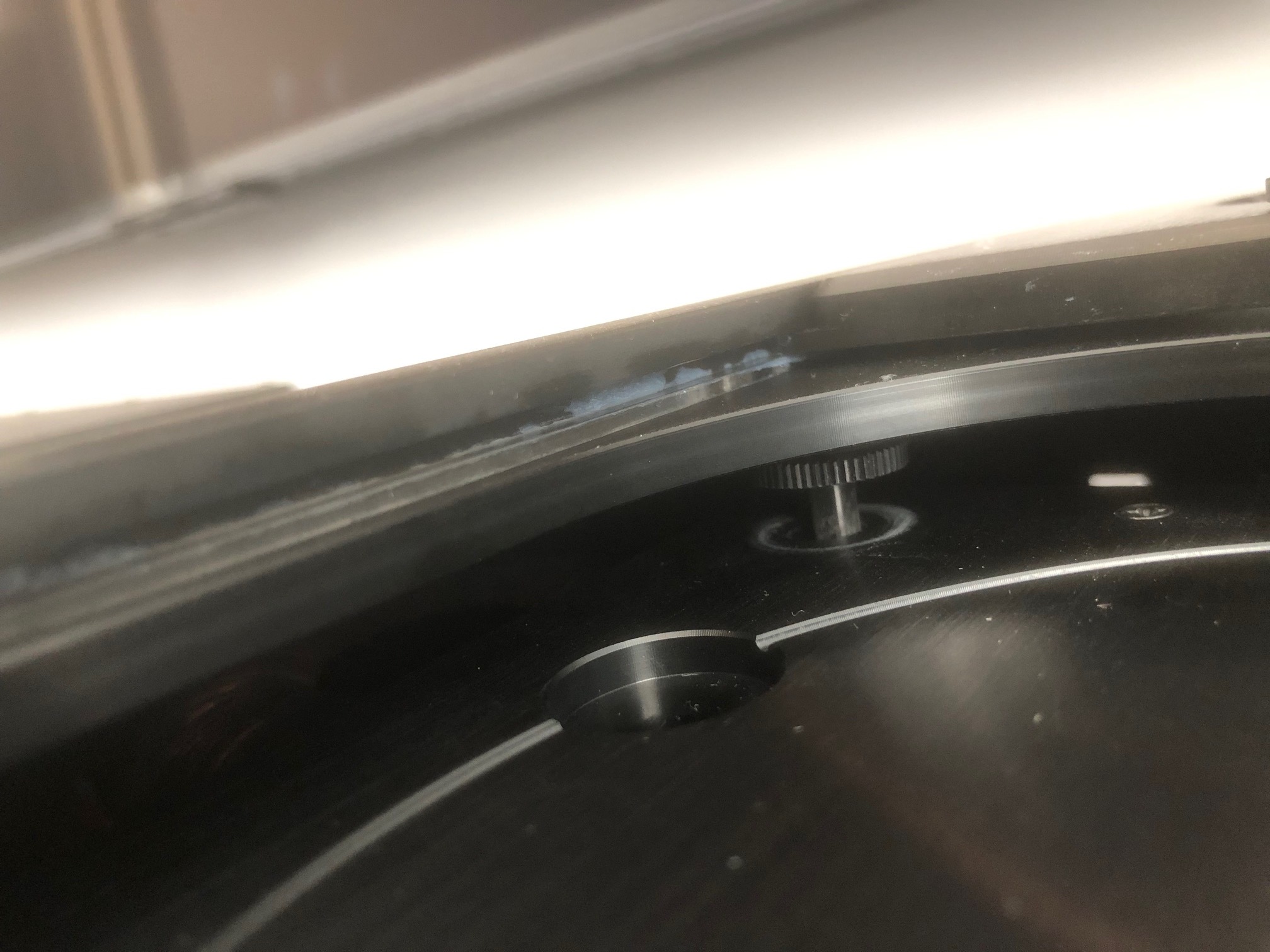 Площадка с лазером (это её называют мехом?) по четырём углам имеет разную жёсткость нажатия. Может надо покрутить колёсики в четырёх углах? Они все на разную длину вывернуты.