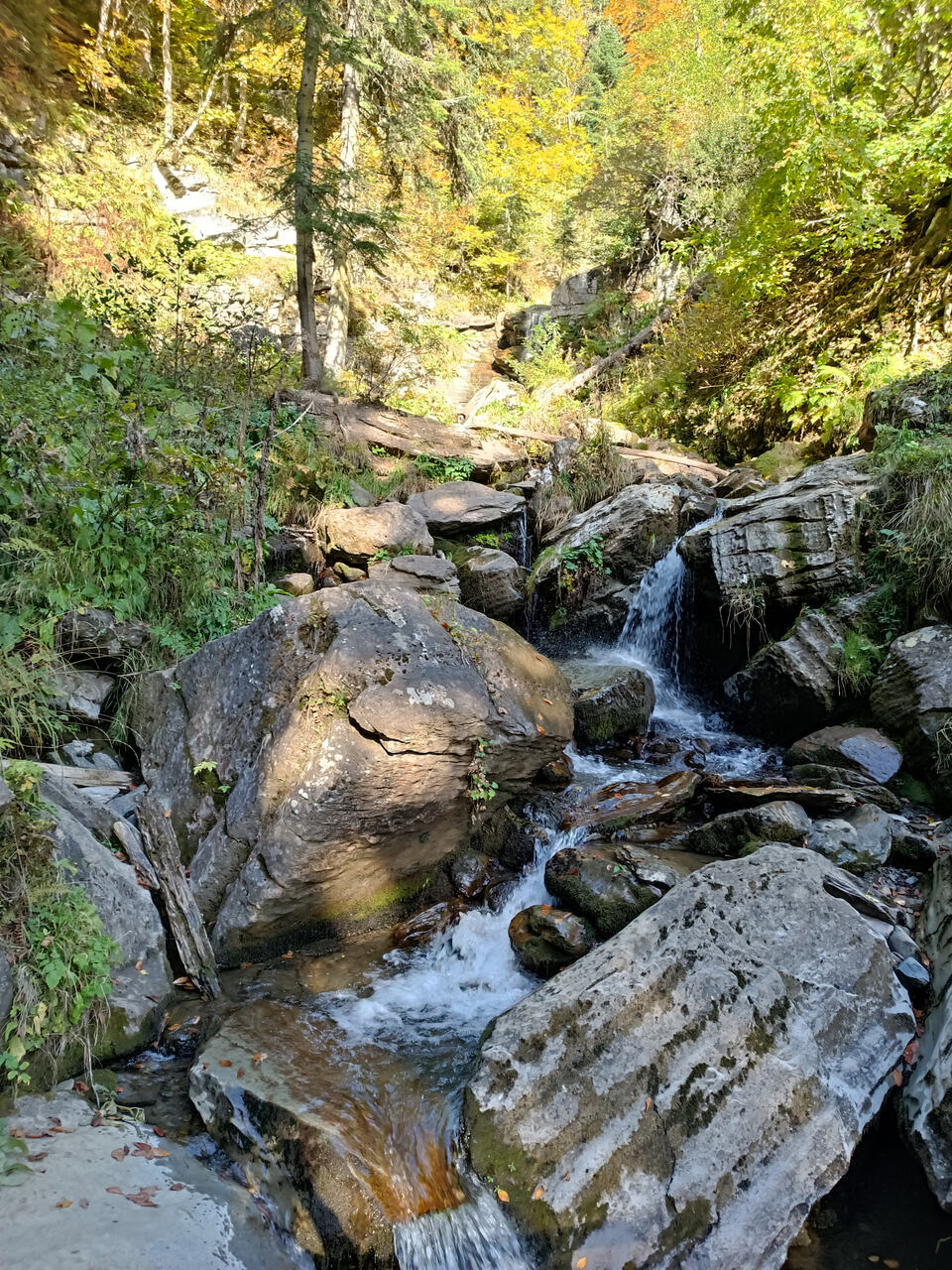 Тропа на водопад Менделя. Мы на канатках катались. Это третья канатка с начальной точки Роза хутор. От канатки относительно недалеко, но достаточно тихое место, не так много туристов идет к водопаду. Вообщем, нашли где уединиться.