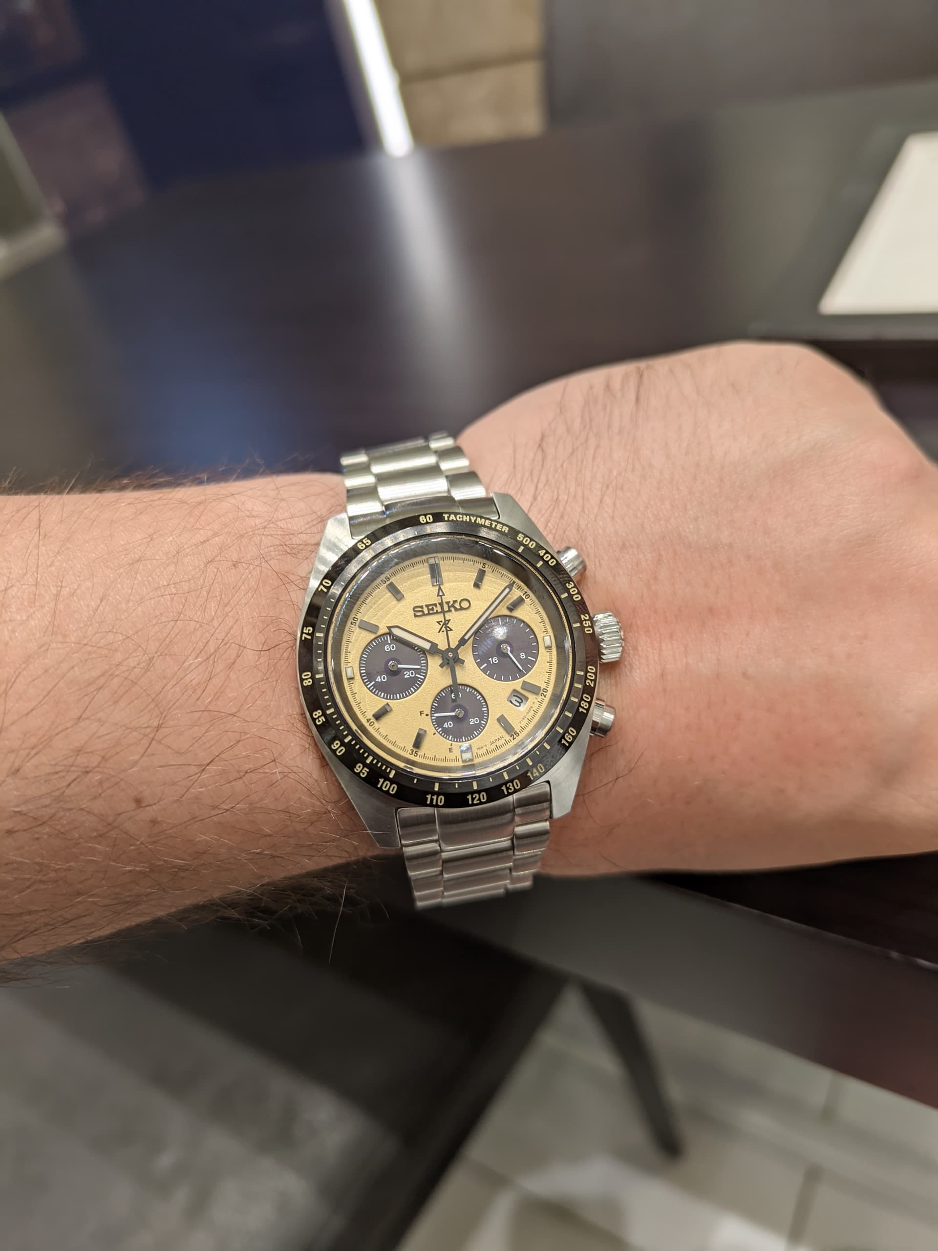 У меня такие. “Своё” фото делать не стал. Лежат в коробке с начала пандемии - как я стал работать ремоут дома. Соответственно носить их практически некуда и дёргать завод чтобы они лежали в ходу на полке тоже не хочется. А покупкой мувера так и не озаботился ))