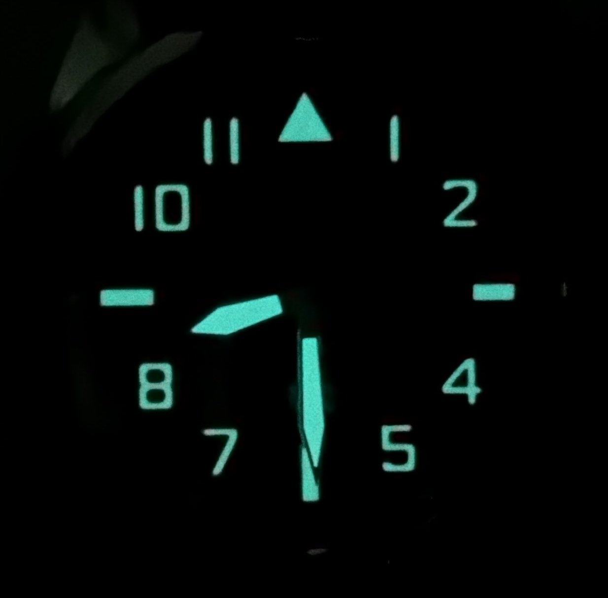 Приехали, цифер зеленый, как просили. Ремешок я бы поменял, может даже на зеленый или травяной, причем может даже не клеенный двойной, а просто полоска толстой матовой кожи с закрепками ниток по краям у дужек. Бакля сильно лучше чем ожидал. Часы огонь