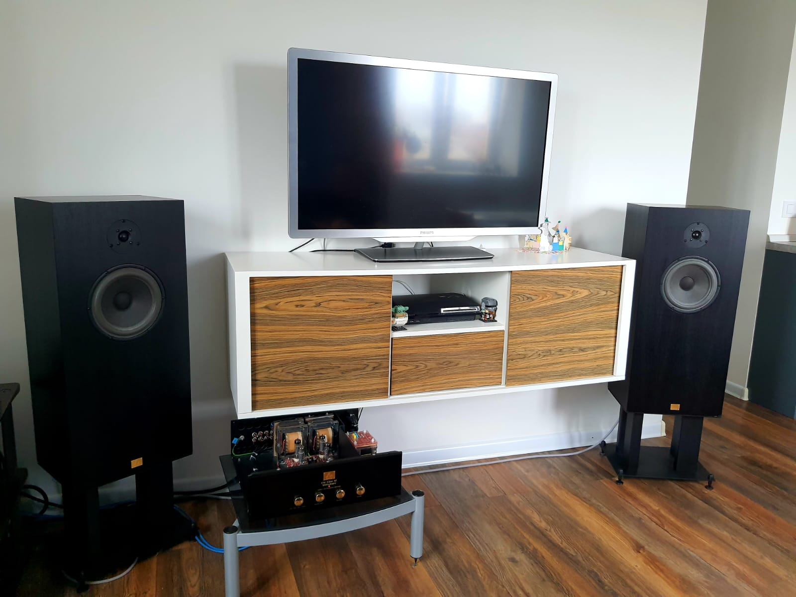 Далее я задействовал туровый Bluesound Node130 с модифицированным внешним линейным питанием (бегать до стойки с Cyrus и обратно оказалось не очень неудобно).