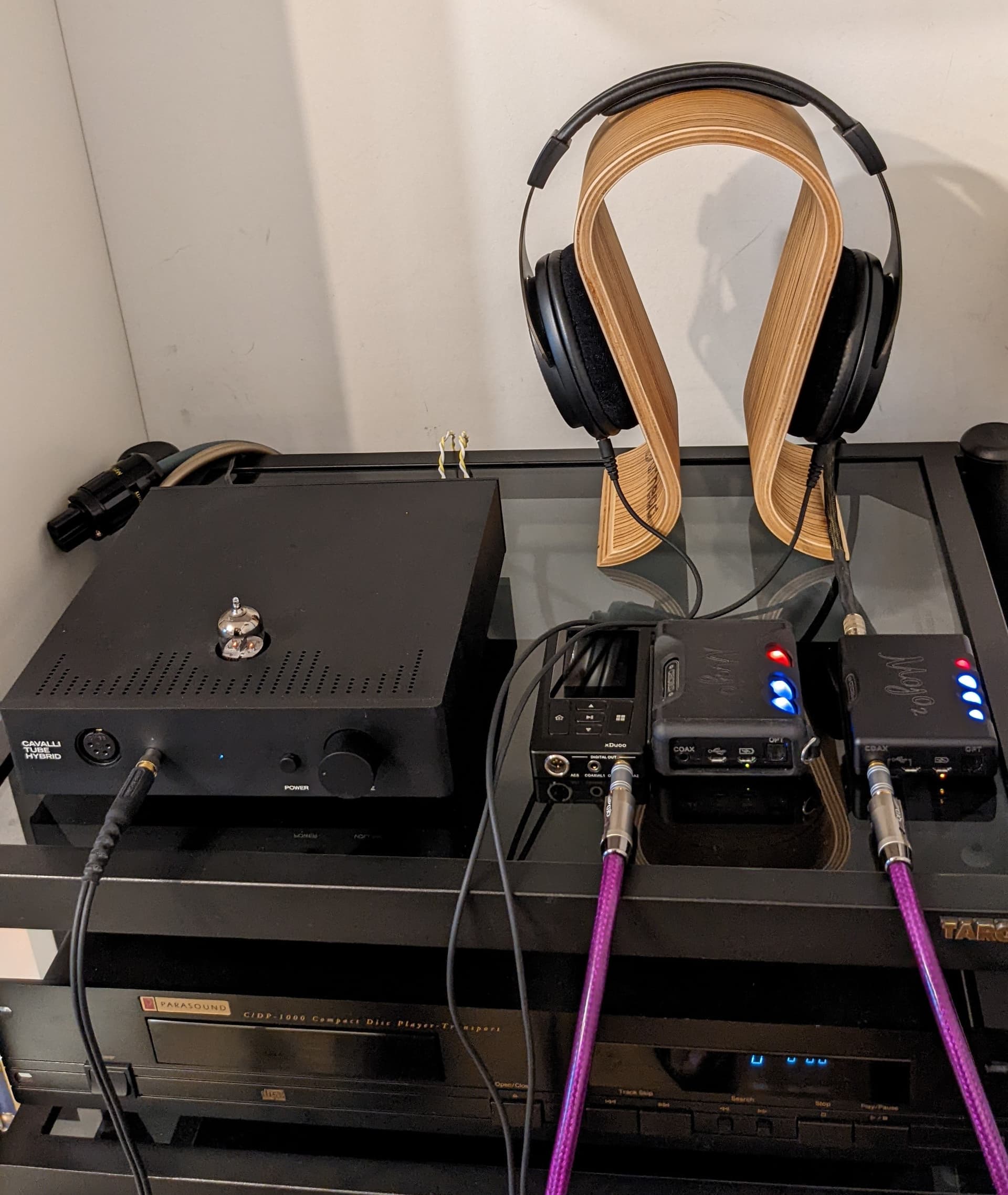 В стационарную наушниковую систему Mojo изредка привлекается для воспроизведения записей в высоком разрешении (грешен, порой хочется послушать какую-нибудь с душой сделанную оцифровку винила). Файлы 16/44 и “кружочки” гораздо вкуснее подаются старой мультибитной Yamaha DX-U1 с гибридным внешним усилителем Мassdrop CTH.
