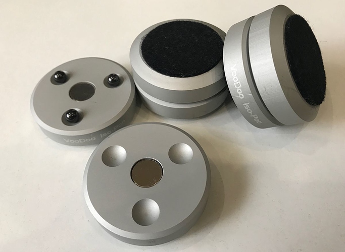 Ещё добавлю для понимания эффекта: данные изделия не красят звук, как кабели, например, они как-бы добавляют динамикам АС и самой АС новые степени свободы, от чего звук раскрепощается, начинают быть осязаемыми тонкие нюансы звука во всем диапазоне и это звучат те же АС со своим характером, но как-бы значительно улучшенные… С данными ногами, например, намного лучше слышна разница между вариантами 16/44,1 и 24/96 одного и того же музыкального материала.