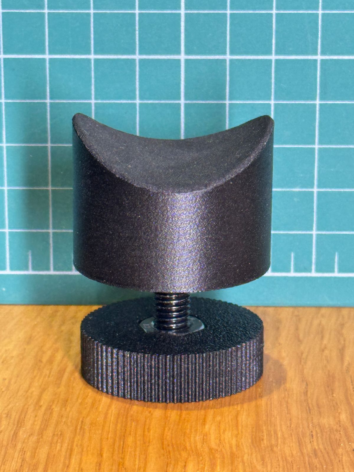 Замучившись точно подбирать высоту, вырезая канц.ножом шайбы, пришел к выводу, что нужна подставка с резьбой.