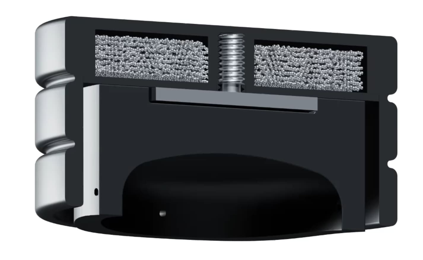 Купил мелкий песок и засыпал в полость между гибкой мембраной и корпусом. Получается такая же двойная работа. Только в отличии от StackAudio, где частицы просто находятся в своей полости и вибрируют только от вибраций, передающихся от корпуса, у меня они лежат на мембране, которая сама по себе движется, отчего вибрация передается еще более активно (при нажатии прям четко слышно как песчинки взаимодействуют между собой).