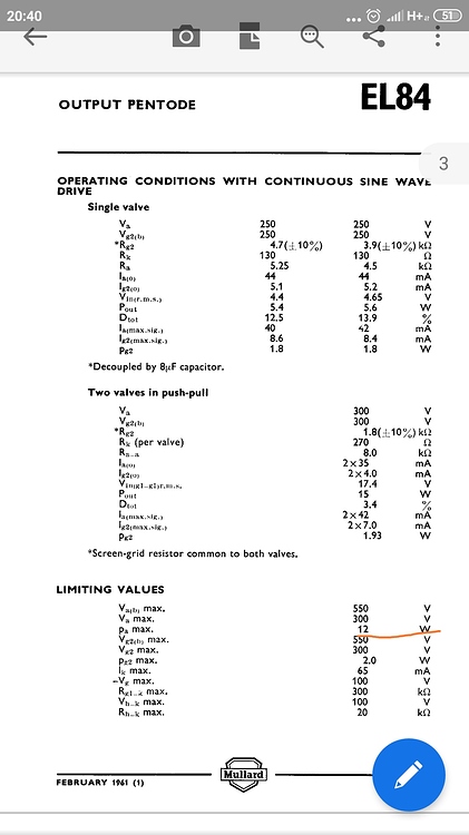 Мощность усилителя не сильно зависит от анодного напряжения. У el84 максимальная мощность анода 12w, её нельзя превышать. Даже если вы их загоните в глубокий класс B.