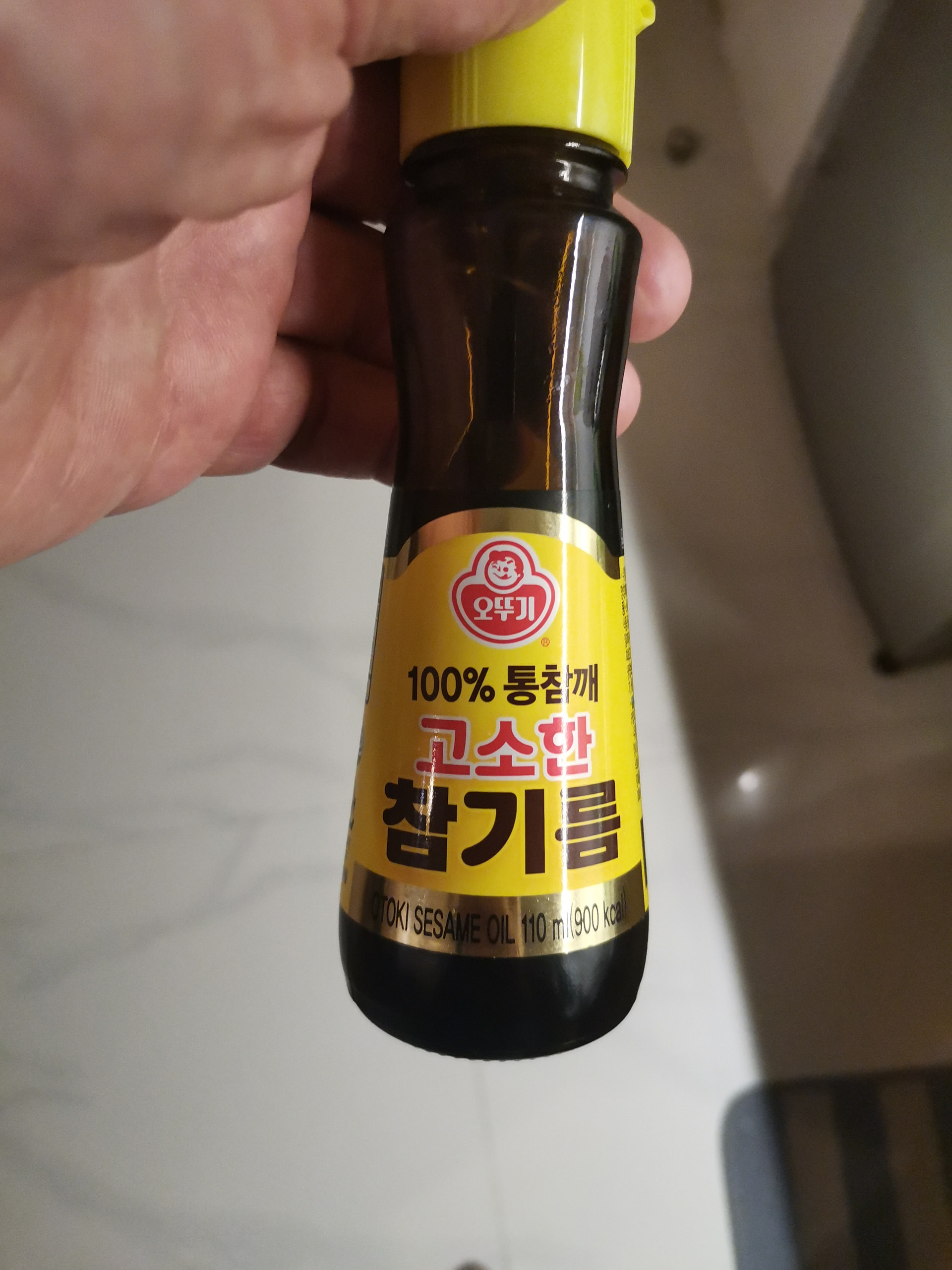 Кунжутное масло, люблю его в салаты добавлять. Не дёшево, 3$ за 110 мл, но вкусно! Стараюсь Пару-тройку бутылочек привезти с собой