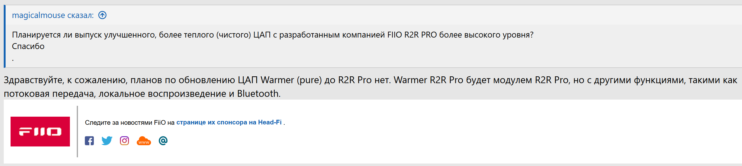 Не будет в след. году отдельного цапа на R2R Pro. Так что Warmer будет подольше актуален. Может потому решили не делать отдельный цап, что разница в звуке с Pro версией будет минимальная. А комбайн будет стоить раза в 2 больше и не всем он нужен.