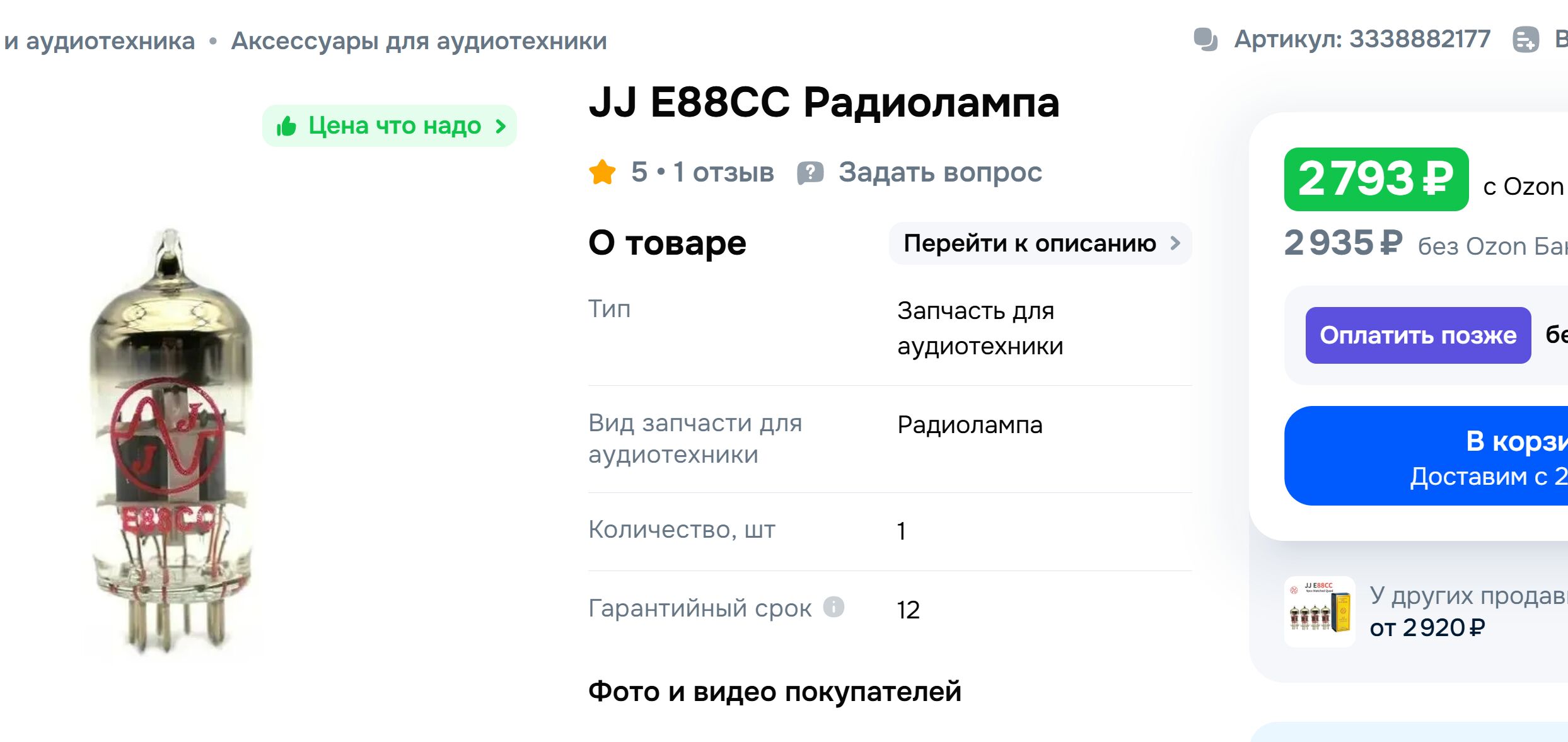 - Сцена и детализация: Из-за более высокого коэффициента усиления (мю=35 против 33 у E88CC) и иного спектра гармоник, сцена может стать чуть шире, а микродетали — более подчеркнутыми.