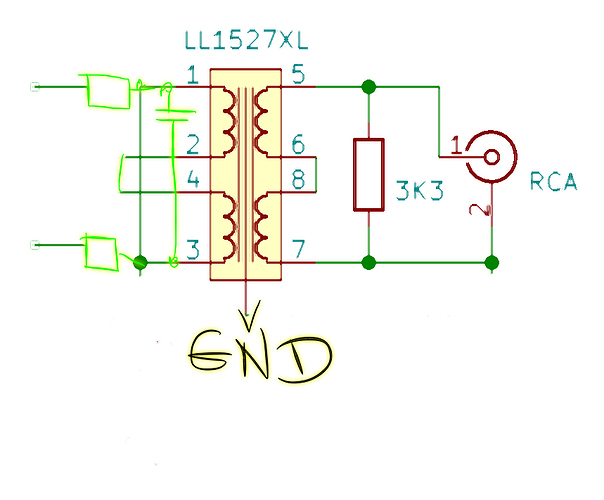 Я бы экран лундала подключил бы лучше к gnd, а не к выводу 2 rca.