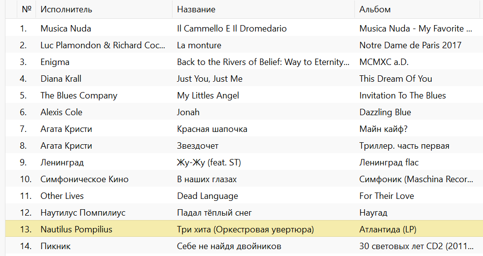 Трек лист