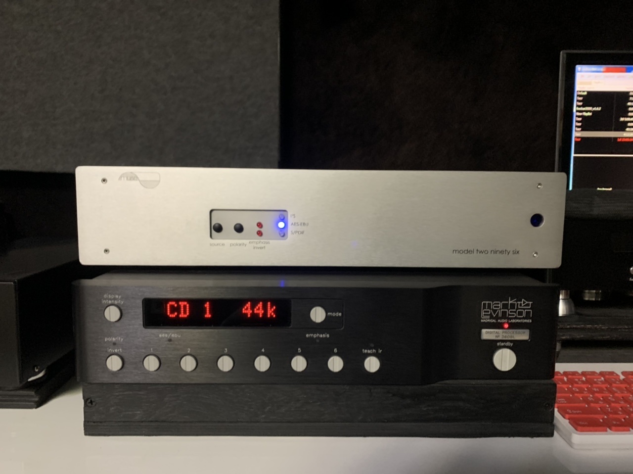 Вчера и частью сегодня завершал общение с предыдущим туровым аппаратом, тандемом пред/мощник от питерского бренда Filigrane, и вот наконец аппарат отправил в Питер, место освободилось, и барная Легенда - DAC Muse model 296 - занял почётное гостевое место в моей системе, а именно уселся верхом на не менее легендарного коллегу, Mark Levinson N360sl.