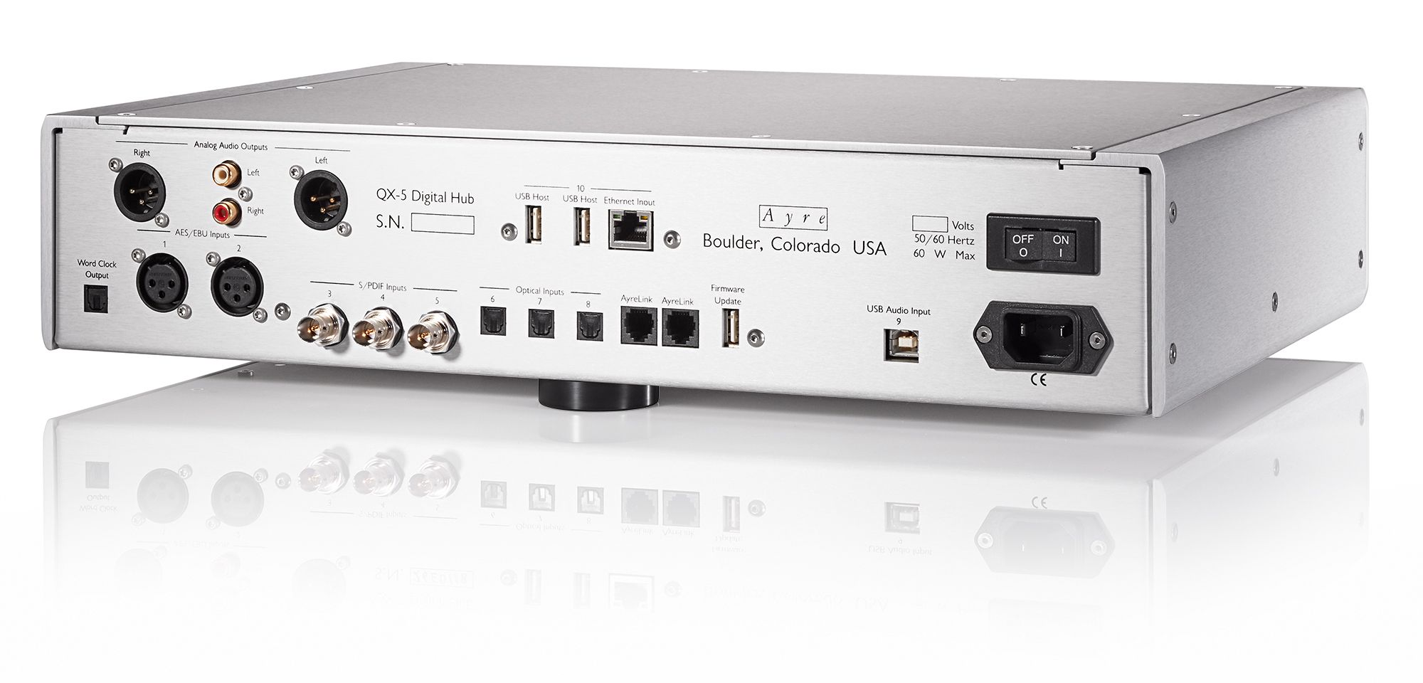 ЦАП с возможностью потокового воспроизведения музыки из интернет или локальной сети. QX-5 Twenty имеет 10 цифровых входов (вход USB-Audio имеет разрешение до 32 бит/384 кГц ИКМ и DSD128. Блок цифро-аналогового преобразования базируется на новом чипе ESS ES9038PRO, причем прецизионный тактовый кварцевый генератор разработан совместно с петербургским заводом “Морион” и имеет рекордно низкий для аудиоиндустрии уровень фазовых шумов. Цифровой фильтр реализован на программируемых логических микросхемах FPGA, алгоритмы и микрокод для которых созданы инженерами Ayre.