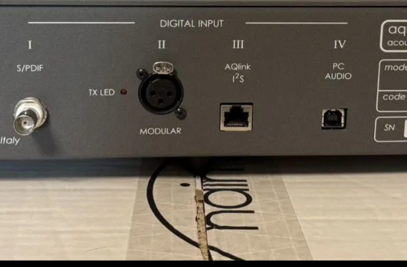 Электрические входы ЦАП BNC, RCA и AES/EBU, а также оптоволоконный порт AT&T/ST, поддерживают 192 кГц/24 бит и DSD64. Вход USB-B и фирменная технология Aqua AQLink, использующая интерфейс I²S и порт RJ45, поддерживают LPCM до 384 кГц/24 бит и DSD128. CD-транспорт La Diva M2 и сетевой мост LinQ предлагают соответствующие интерфейсы AQLink. Выход доступен как на небалансных разъёмах RCA, так и на балансных разъёмах XLR с трансформаторным управлением с фиксированным уровнем сигнала [см. отчёт о лабораторной работе премьер-министра] .