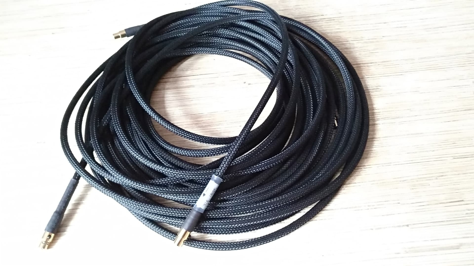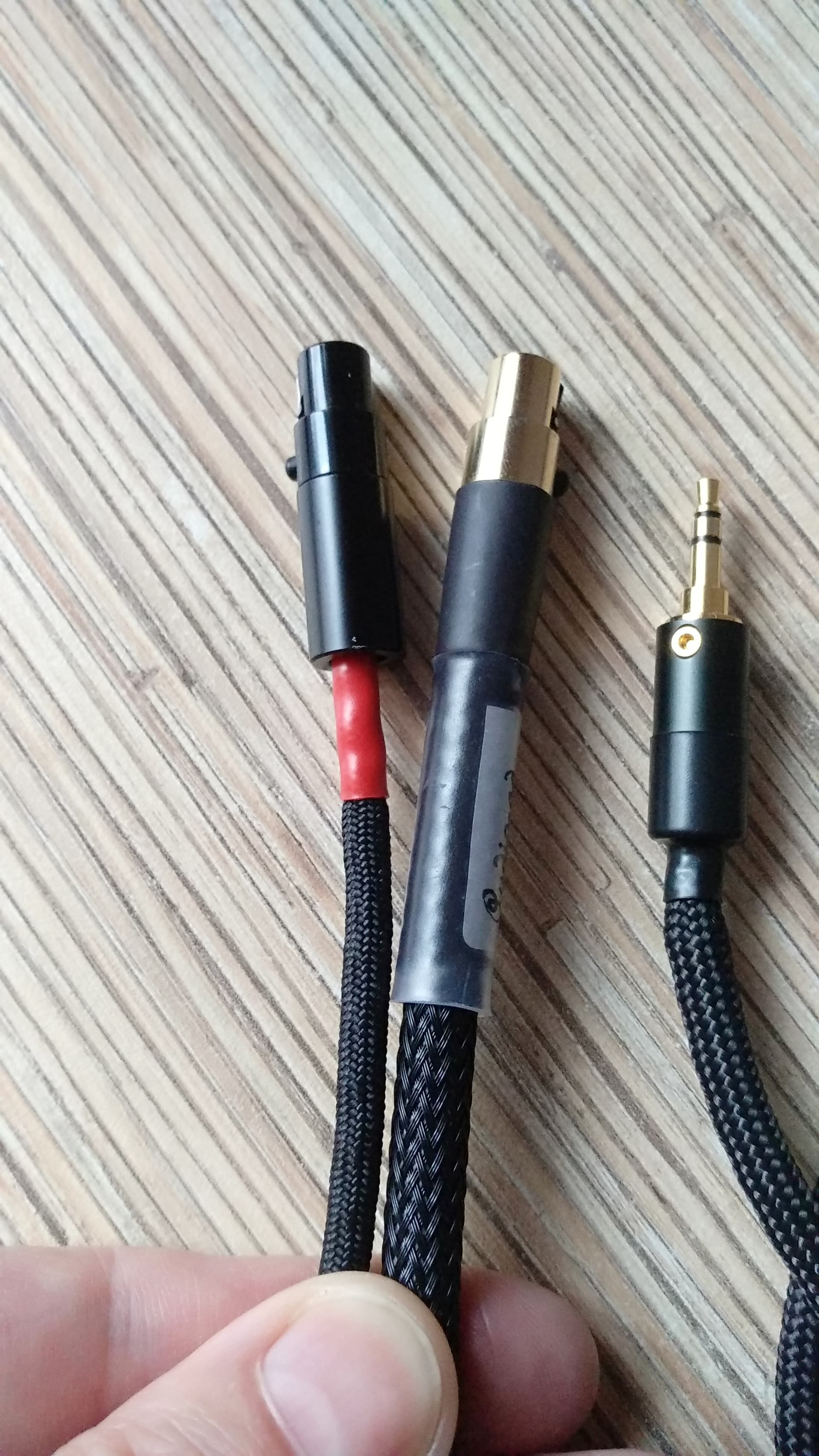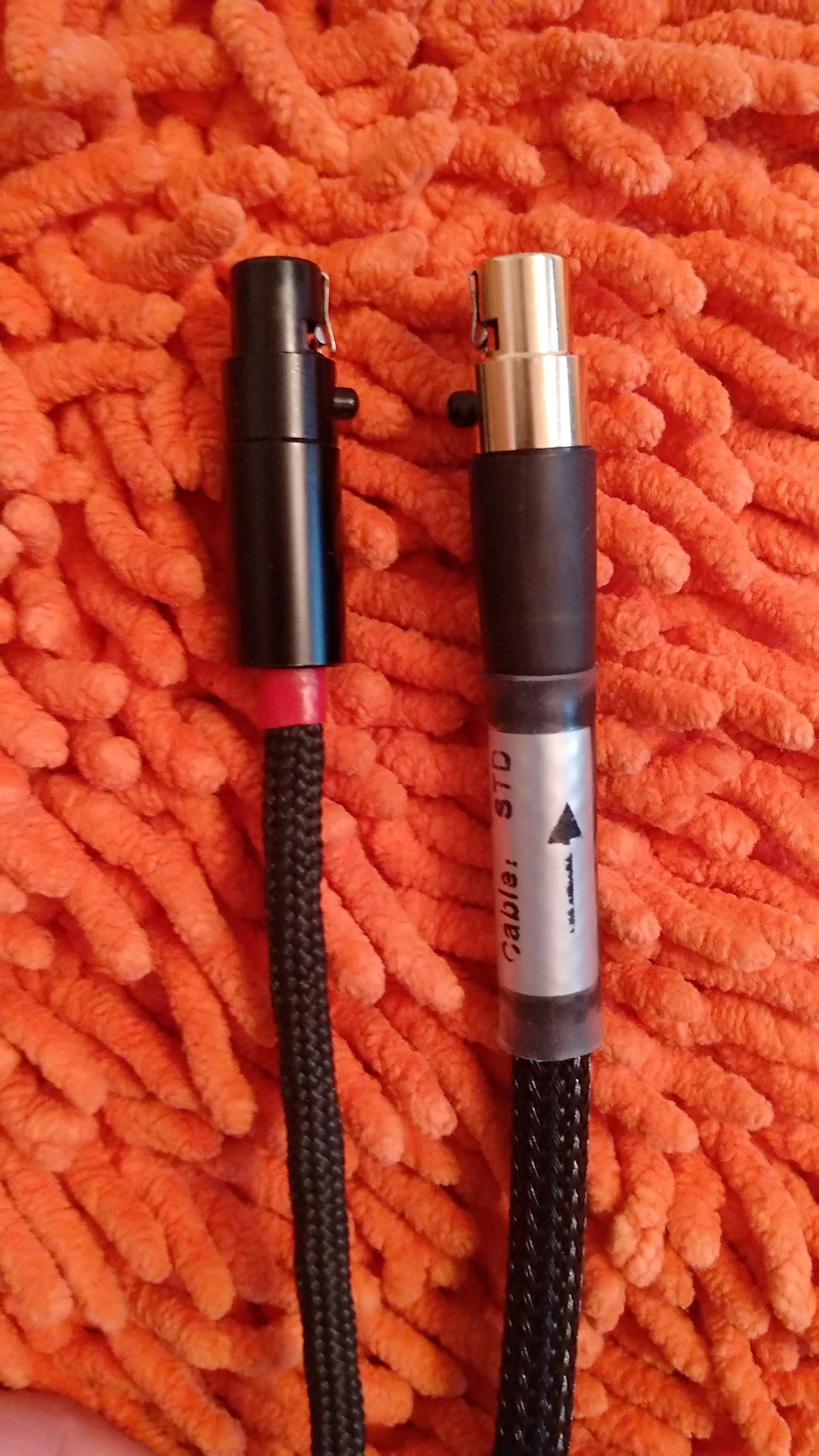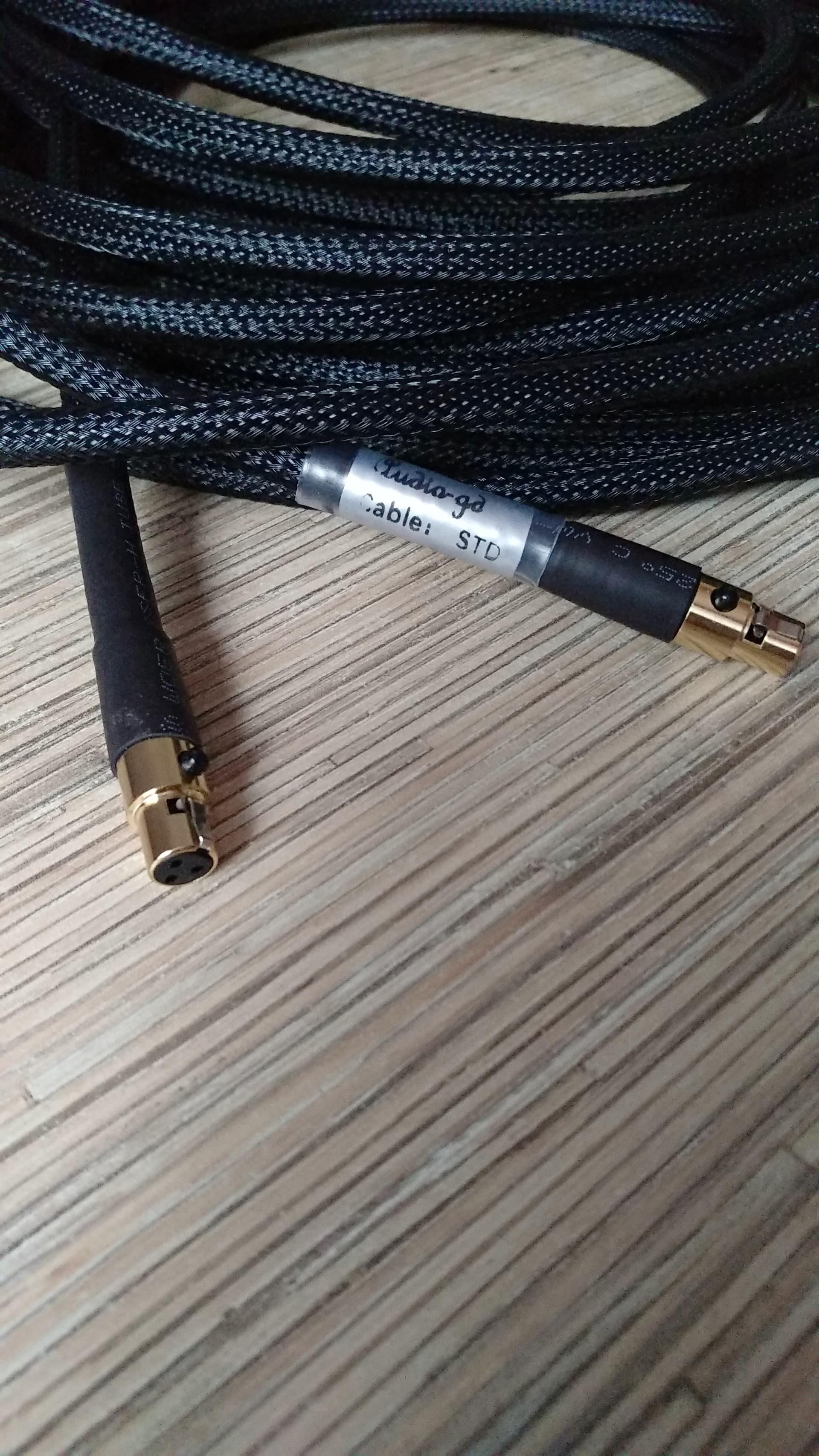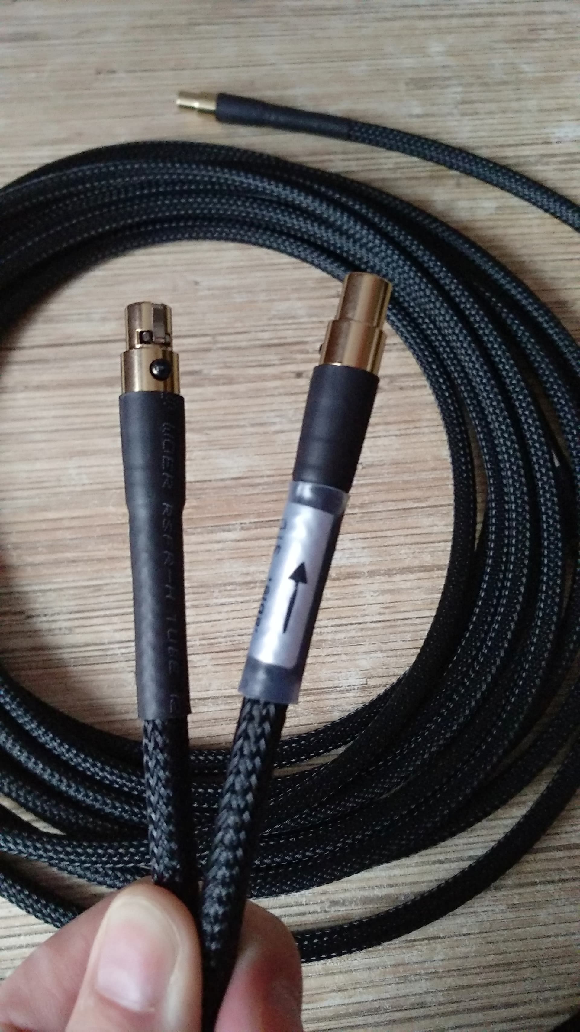 Получил межблочники ACSS от Audio-GD. Длина не стандартная ( 2 по 8 метров ), заказывал в Патефон, полтора месяца с момента заказа. Исполнение на высоте, кабель толстый ( 7 мм ), не думал, что такую толщину можно запихнуть в разъемы miniXLR ( на фото сравнение с моими ушными кабелями на фирменных разъемах Plus Sound Audio ), направленный. Из недостатков, не пометили левый/правый, пометил белой термоусадкой.