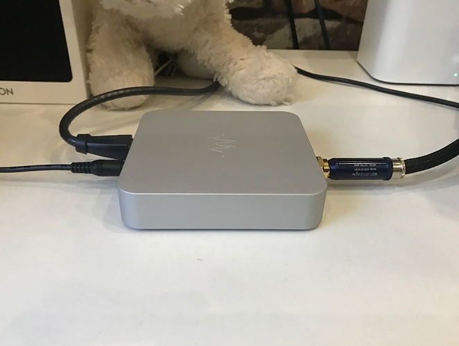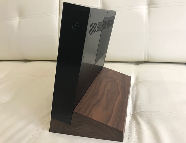 Подставка не слишком высока и если кабели имеют сильную жёсткость (NBS, PAD, Fusion…) или длинные крупные RCA, то согнуть и установить потом устройство будет проблематично. Можно и кабель повредить и девайс уронить. На задней панели было бы удобнее. Даже для быстрой перекомутации, если потребуется тестирование кабелей. Дабы их не повредить, при тестировании пришлось класть устройство на бок…