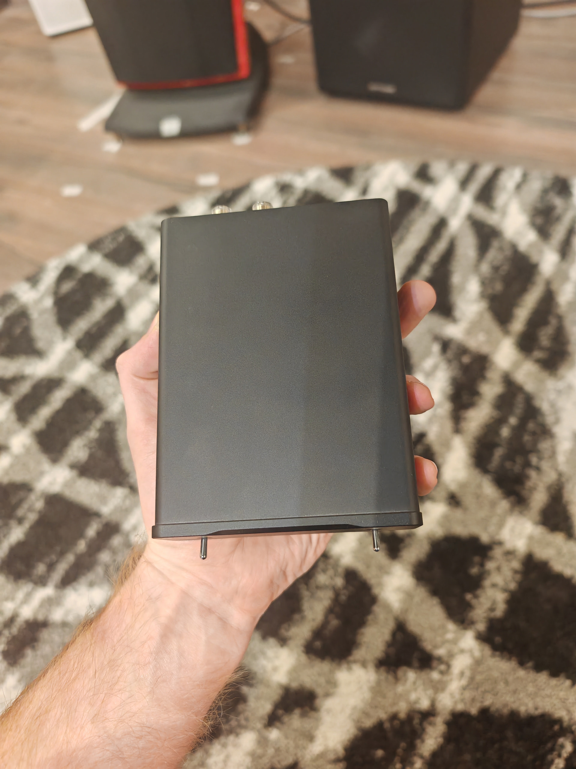 9.Размеры и вес: Компактные размеры 210 x 47.6 x 201.6 мм (Ш x В x Г) и вес 1.56 кг / 3.44 фунта позволяют легко интегрировать устройство в любую аудиосистему.