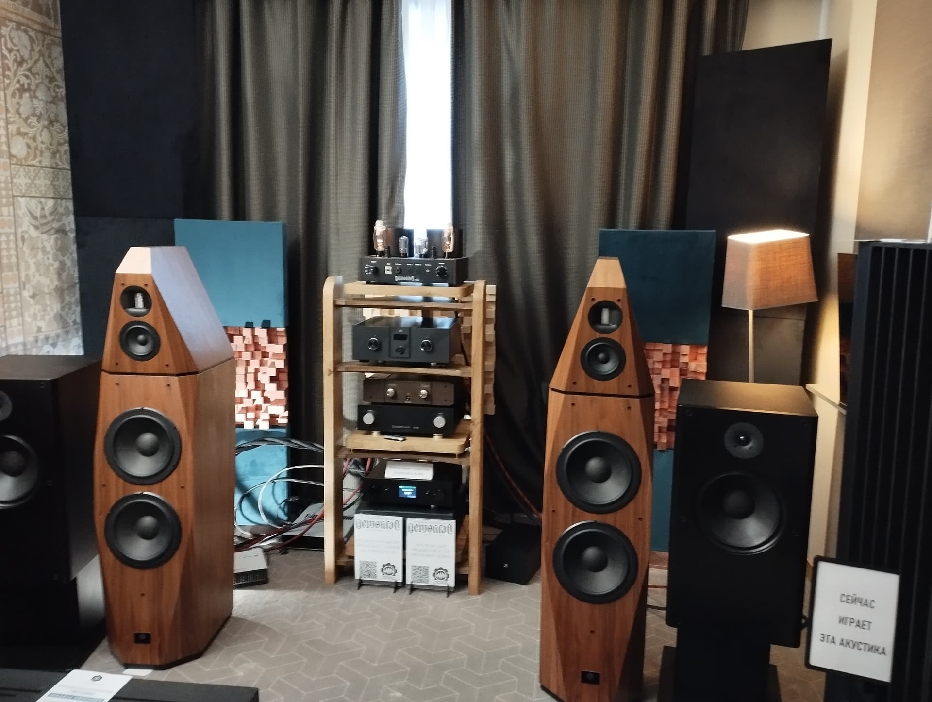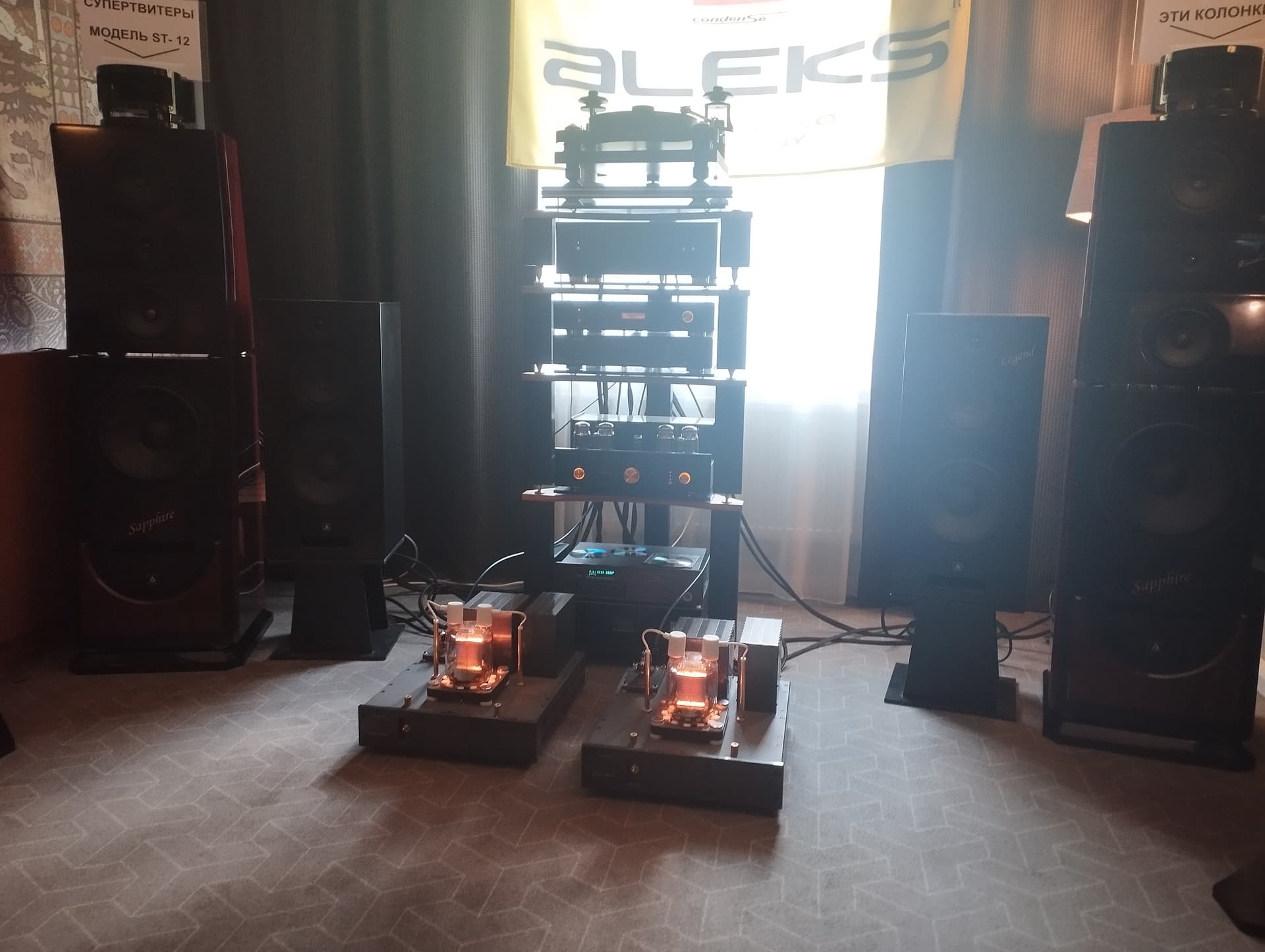 Aleks audio огромные напольники с какими-то зверскими ламповыми моноблоками.