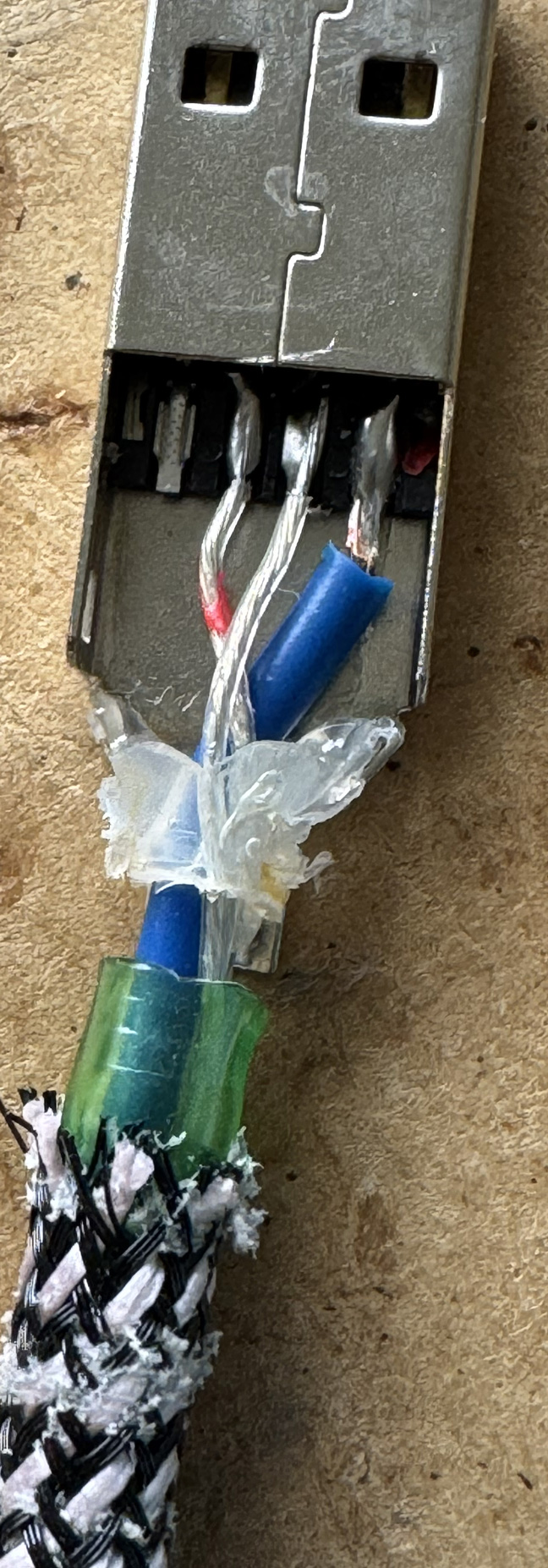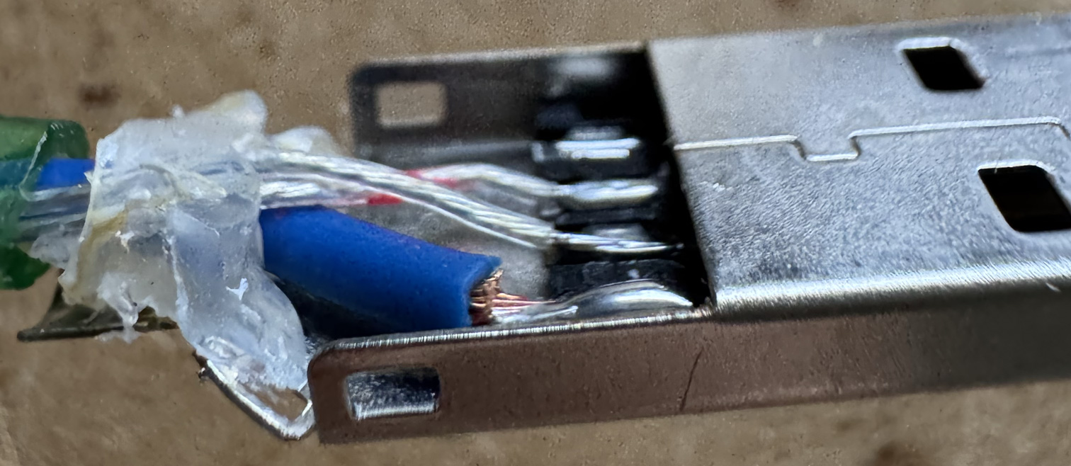 И тут вспомнил про волновое сопротивление 90 Ом по стандарту. Измерить нечем. Решил сделать последнюю попытку: распотрошить кабель и заново свить data-проводники с минимальным шагом. Результат: теперь всё идеально работает!