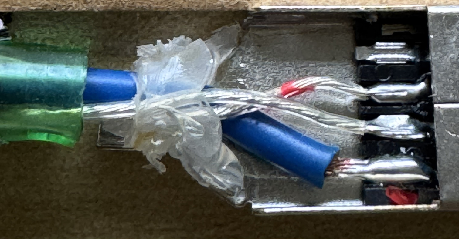 Понял свою ошибку и для второго кабеля взял уже серебро моножилу 20 AWG в тефлоновых трубках для данных и 16/18 AWG OCC-медь в тефлоне для земли/5v. Сделал конструкцию по образу и подобию межблочников Helix (только 5v идёт снаружи). Звук (как и в случае с межблочниками и сетевиками Helix) — конечная, поезд дальше не идёт