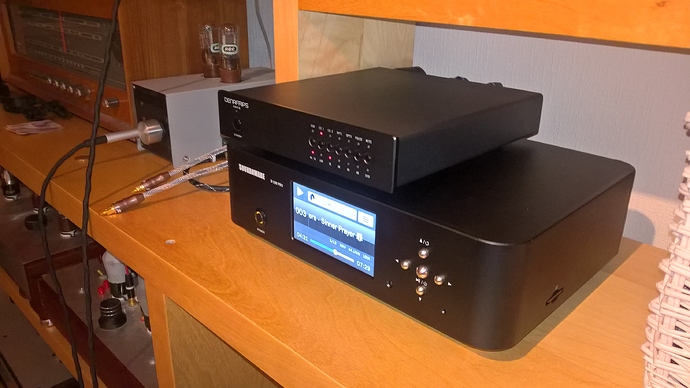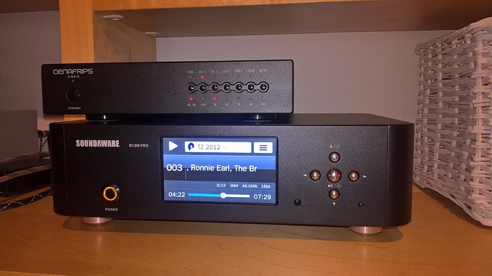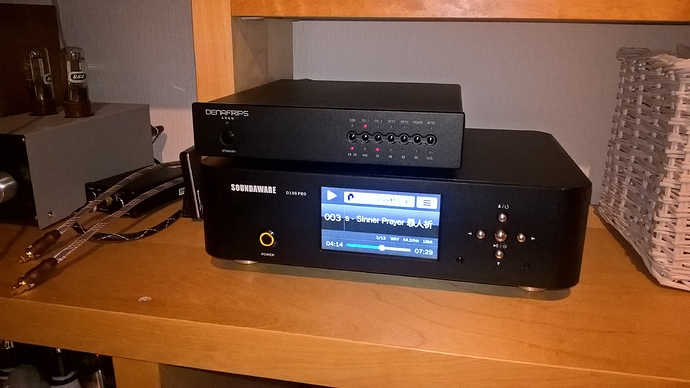 По первому впечатлению звук не подкачал, порода R2R-дискрета прослеживается чётко. Но об этом после прогрева и основательного прослушивания. Пока прогнал во всех режимах, дабы проверить заявленные ТТХ - всеяден, поддерживает DSD64 в DoP режиме по коаксиалу и оптике.