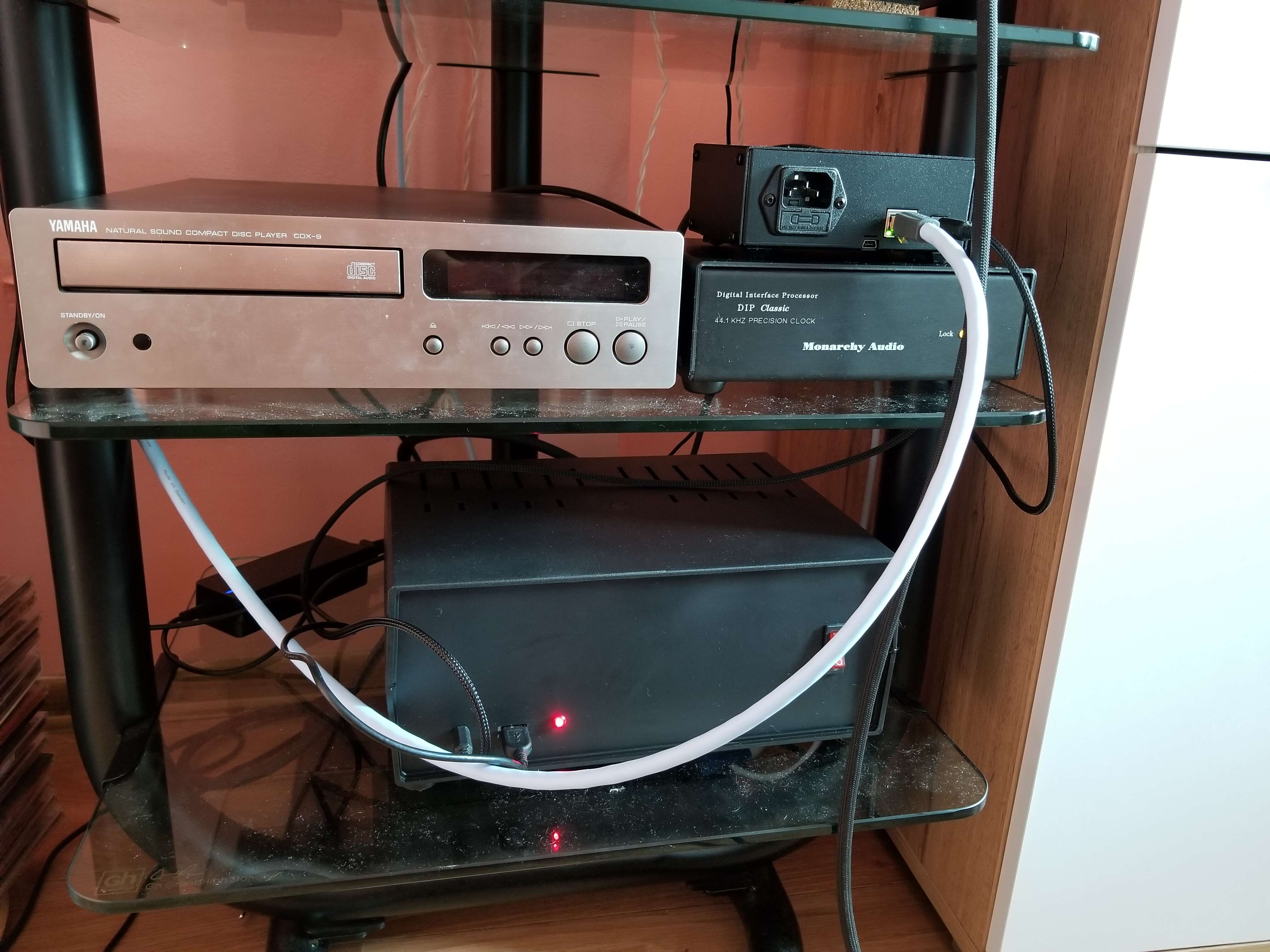 DIP использую в связке с мастеровым файловым транспортом Purebone (beaglebone black + плащ/шляпа-реклокер с выходами SPDIF и AES), соединенным с DIP коротким (30см) RCA шнурком Canare с конекторами Amphenol, далее сам DIP соединен по AES с помощью кабеля SUPRA XLR Blue с ЦАПом Proceed PDP3. Так что все впечатления справедливы в рамках такой связки.