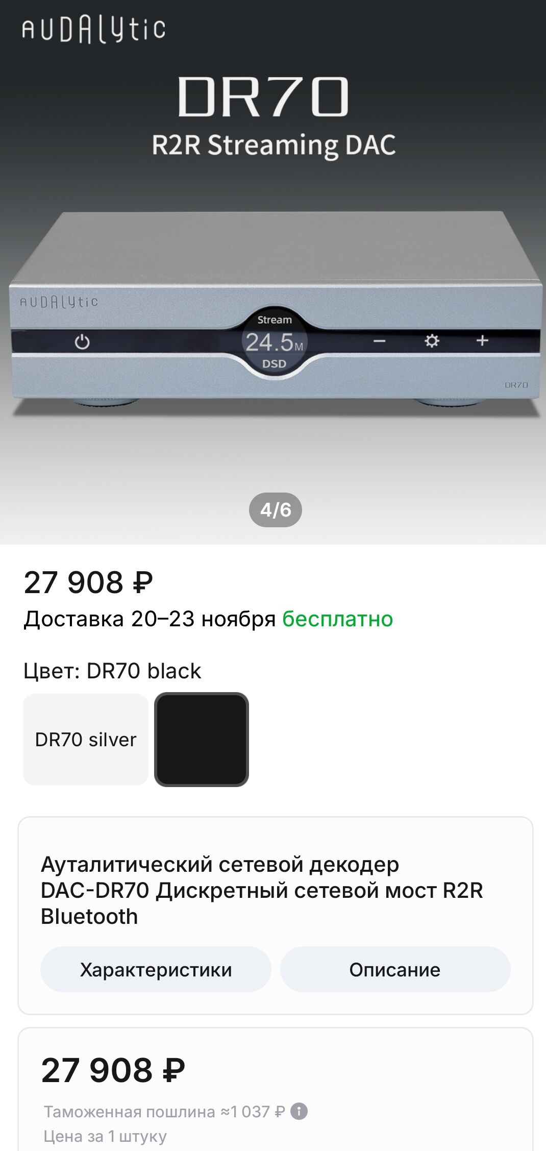 Добавлю свои 5 копеек. HIFIMAN EF400. Брал с ОЗОНА, ехал он ко мне ровно месяц, но с учетом цены (16980) - того стоило. В отличии от 499 в 400м полная матрица HYMALAYA (а не Philips по данным обзорщиков), на сайте производителя в случае с 499 просто написано R2R без конкретики. Отличия по функционалу - у 400 нет сетевого разъема и кокса, подключение только по USB. По характеристикам техническим: мощность примерно одинакова, а вот остальные параметры у 400-го лучше: THD+N (Line out) в три раза ниже, разделение каналов лучше на 30 Дб, соотношение сигнал/шум на 19 Дб.
