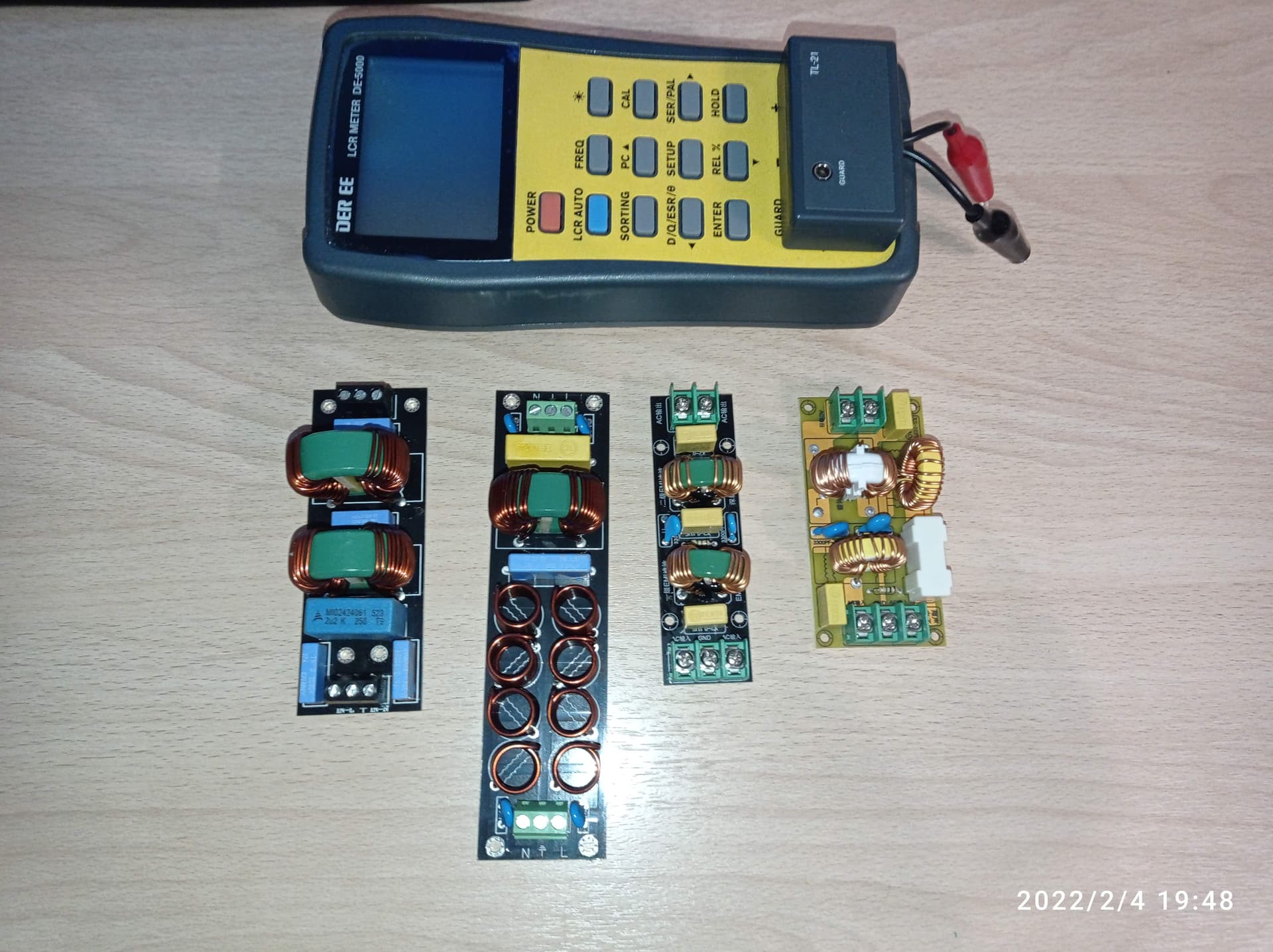 В общем, отзыв пока будет такой: плата фильтрации производства Ayima (на фото крайняя слева) имеет индуктивность синфазных дросселей около 12 мГн, X емкость около 14 мкФ, Y емкость около 2 нФ, и проходное сопротивление 1,7 Ом. Плата была поставлена в разрыв между выделенной линией и ЛБП от Sanderz (двухканальным), от которого запитаны малиношляпа и свитч Zyxel. В этом ЛБП уже стоит инлет-фильтр Еpcos на 1А (L= 5,4мГн), то есть фильтр-плата дополнительно фильтрует. Прогрев сейчас часов 16…17, но в принципе влияние на звук заметно было сразу, и сейчас оно сформировалось более четко. А именно: повышается резкость картинки, глубина и разделение планов, стереоэффекты и ширина базы (теперь звуки летают по всей КДП), убирает вч грязь днем и делает более черный фон.