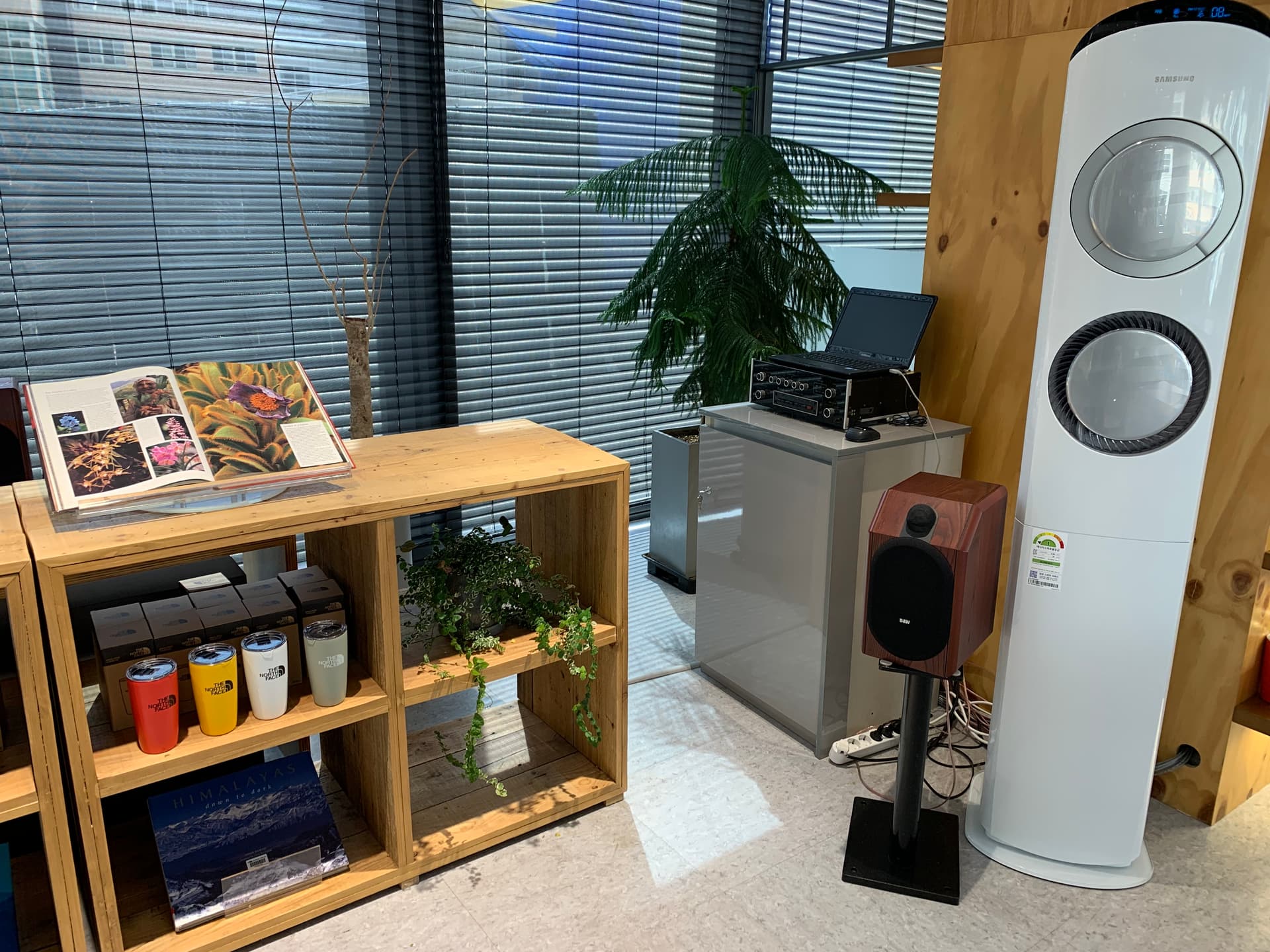 Архитектурный дизайнер Секи Юсукэ создал высококлассное пространство для прослушивания музыки, которым могут наслаждаться люди с разным уровнем подготовки. Плейлисты, составленные музыкантами и владельцами лейблов, предлагают широкий выбор музыки, который меняется в зависимости от времени суток. Как объясняют в Panasonic: «Мы стремимся сделать этот центр базой для создания встреч между разными людьми, где посетители смогут познакомиться с музыкой совершенно по-новому».