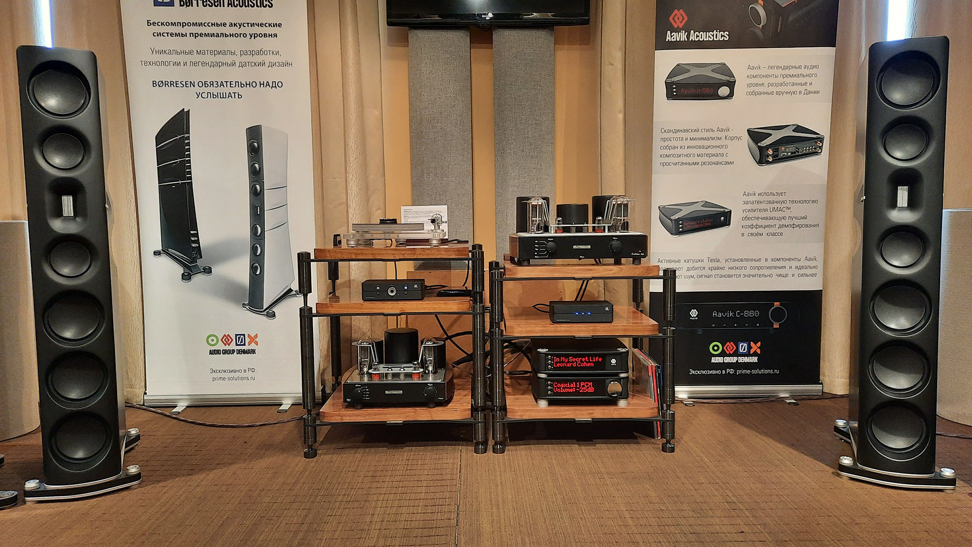 Я не могу сказать, что звук у меня дома в чём-то хуже топа выставки. Ну Borresen Z5 почётче на НЧ играет по сравнению с 15" бумажными динамиками в моей акустике. В остальном незнаю, возможно у моей акустики СЧ даже поживее будет.
