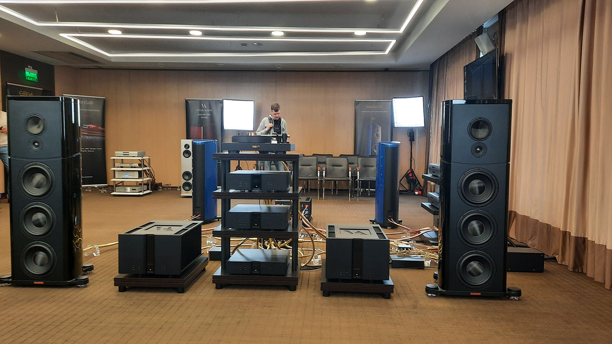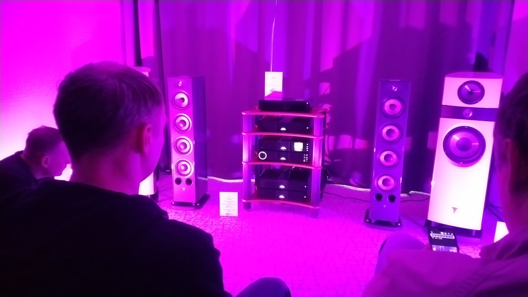 Незнаю, возможно моя акустическая обработка помещения решает Рассеивающие и поглощающие конструкции для КДП - #5230 от пользователя overvolt, а на выставке всё настолько плохо с этим.