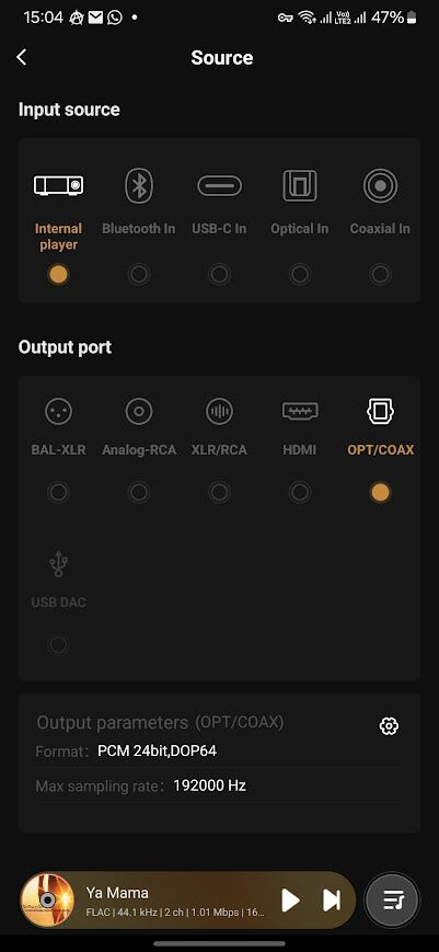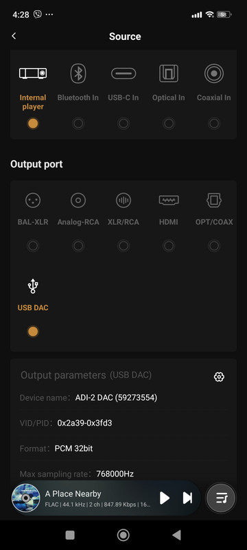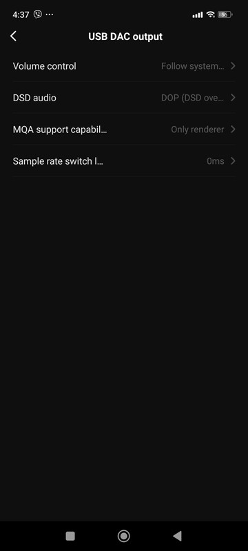 Вот и меню USB DAC Output: