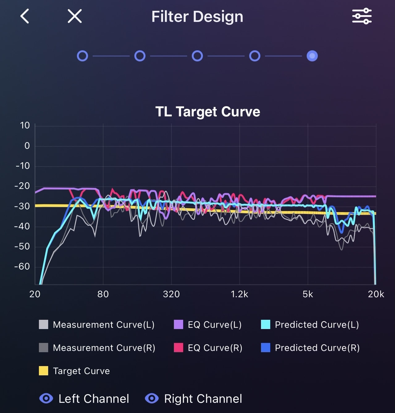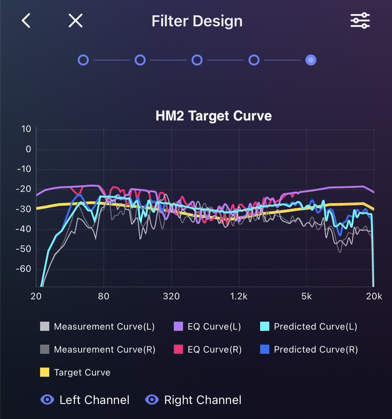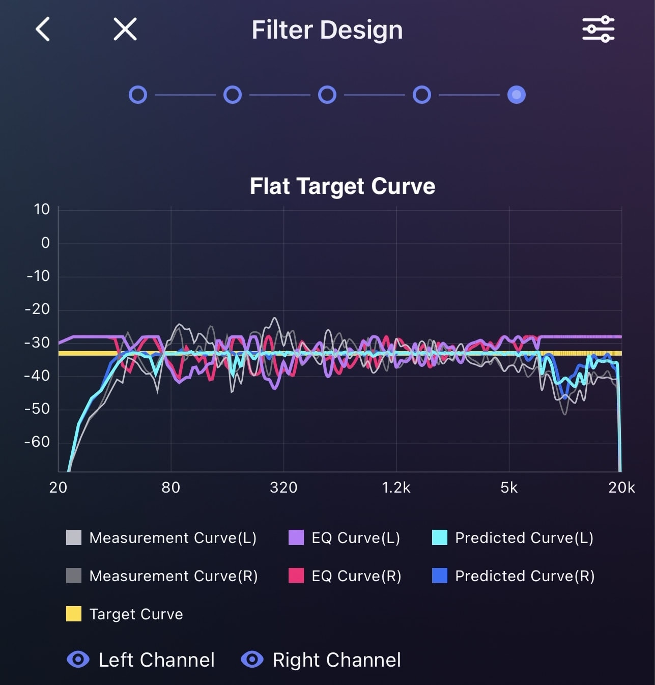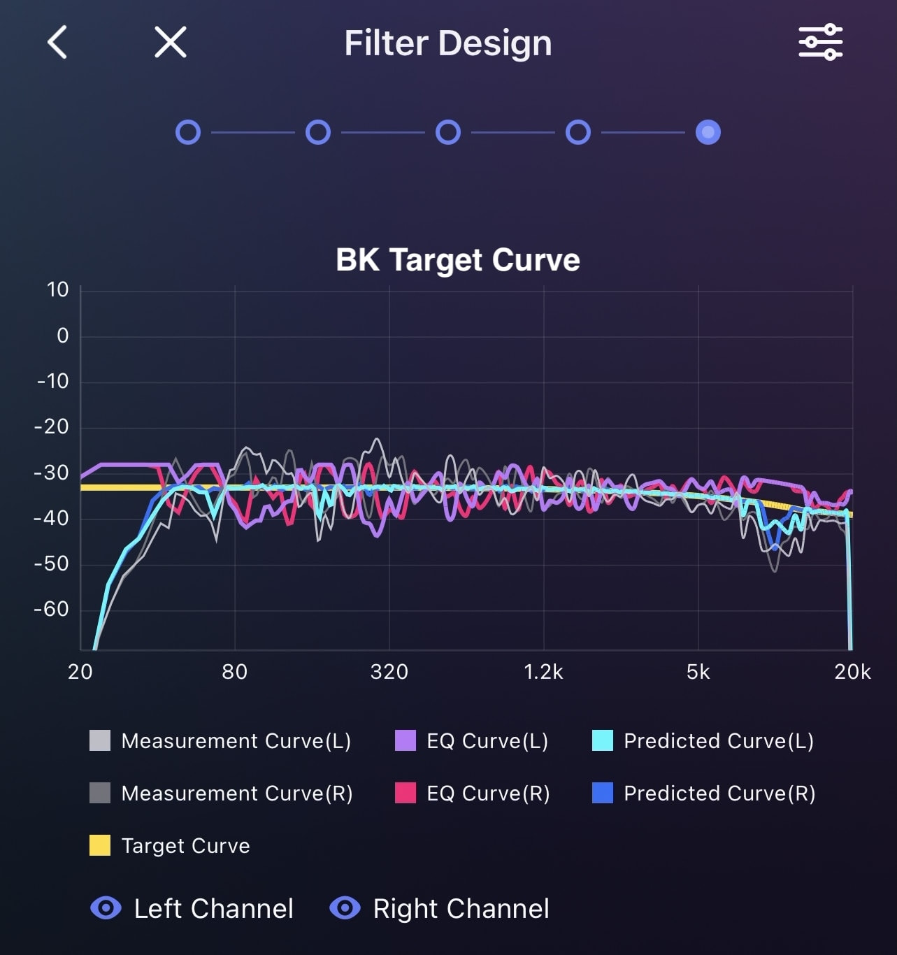 Как видите, это переход по принципу «далее > далее > финиш». Это отлично подходит для завершения задачи, но немного хуже для настройки звука. Слушатели могут выбрать одну из пяти целевых кривых. Кривая BK оказалась для меня наиболее приемлемой, и я использовал её для прослушивания и тестирования. Вот несколько изображений того, как выглядит каждая кривая в зависимости от размеров моей комнаты.