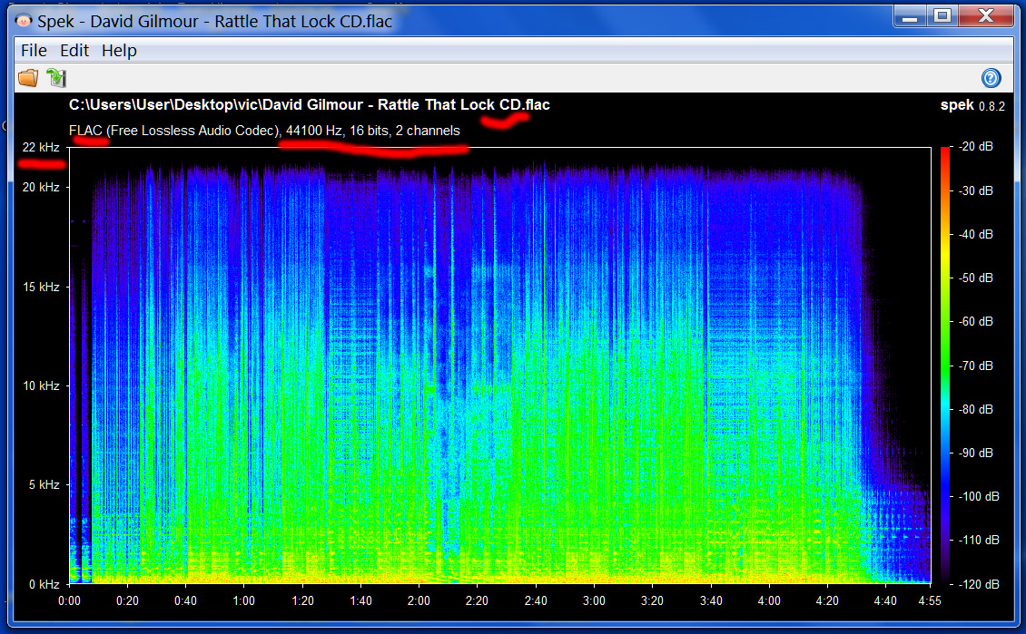 Для тех, кто думает, что после каких-либо операций с lossless файлами, как отправка через интернет, к примеру, файл проходит какую-то конвертацию, простенькая графическая программка spek