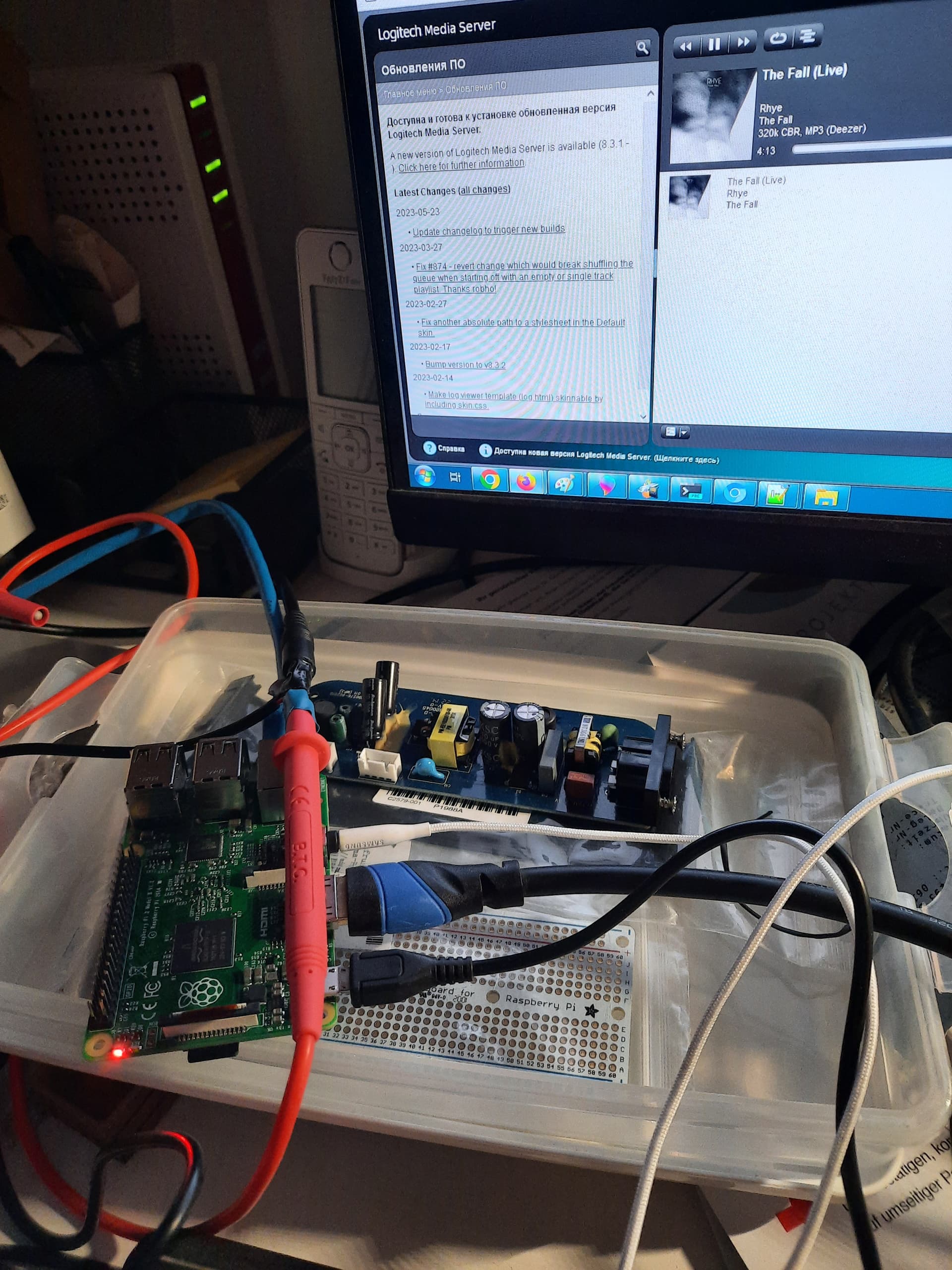 Первый шаг на пути к идеальному (для меня) стримеру: Raspberry Pi 2 rev. 1.2 64-bit с последним piCorePlayer. Завелось не без приключений с софтом. От радости звук в дешевых затычках от телефона с pwm-выхода малины кажется божественным ))) 5В пришлось колхозить на ходу - малинка с порога получила качественный ЛБП от PD Creative. Пошел собирать “корзину” для заказа Яну.