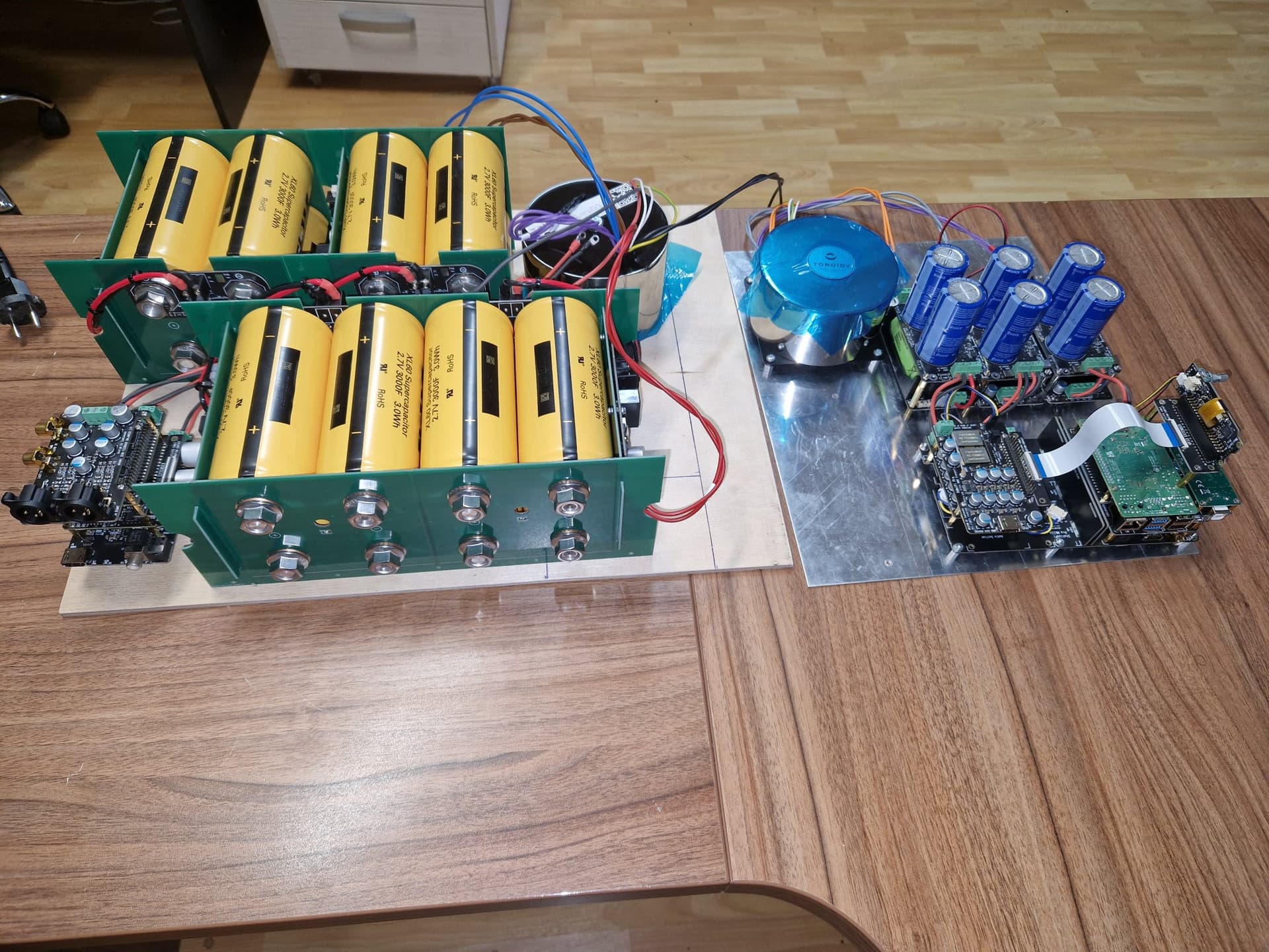 Как-то это слегка нарушает мои представления, судя по объяснениям Яна плата ucpure служит только для зарядки банок и после этого отключается, банки отдают ток напрямую на нагрузку. В третьей версии провода прямо к банкам и подключаются, минуя плату ucpure. В первой и второй версиях плата служит только терминалом для подключения проводов, а все, что на ней расположено, работает только при зарядке банок, а затем в чистом режиме отключается и полностью отвязывает нагрузку от всех предыдущих звеньев. В итоге это декларируется как самый прямой, короткий и “чистый” способ подключения суперкапов.
