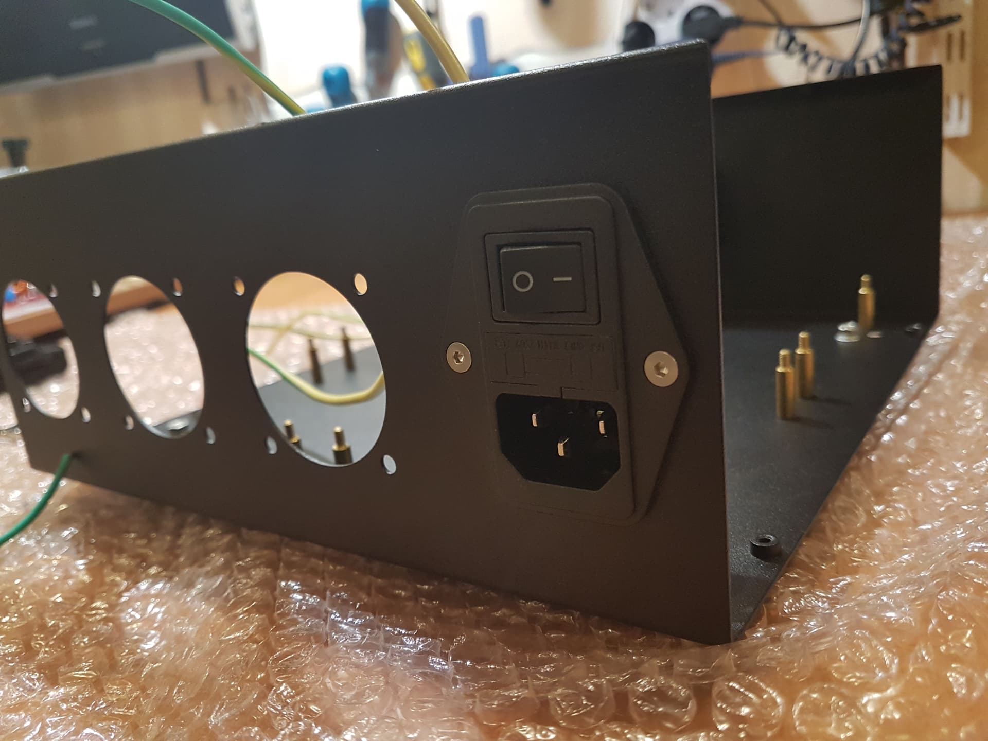 Тестовый стенд. У усилителя и cd земли нет, поэтому по розеткам она не разведена. Для корпуса ещё не вся комплектуха приехала, ну и пока нет понимания какая конфигурация нужна.