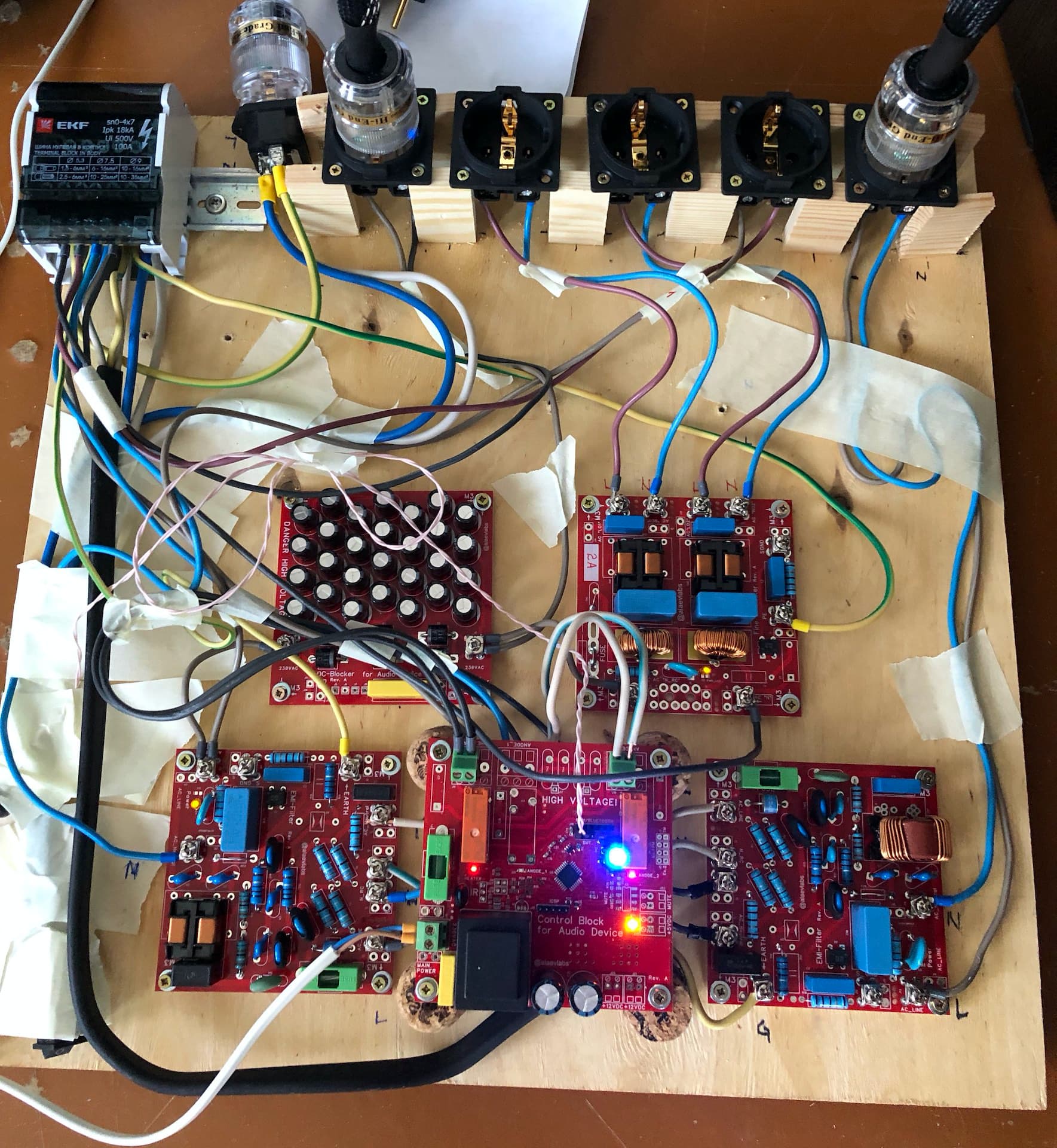 - Основываясь на отзывах участников аудиотура, я сделал некоторые выводы, после чего изменил номиналы фильтрующих емкостей в первичном и конечных модулях. Полагаю, что это благоприятно скажется на влиянии фильтра сетевого питания на звук.