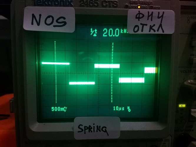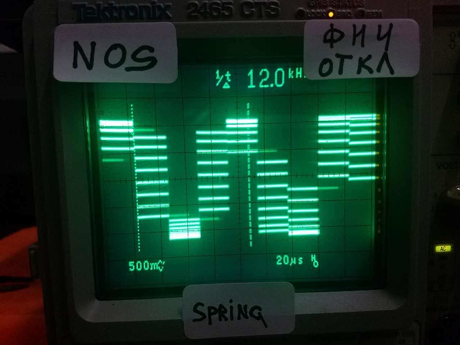 Можно даже в деталях рассмотреть наложенные друг на друга сигналы ,это одна и та же частота многократно сдвинутая по фазе… как я понял.