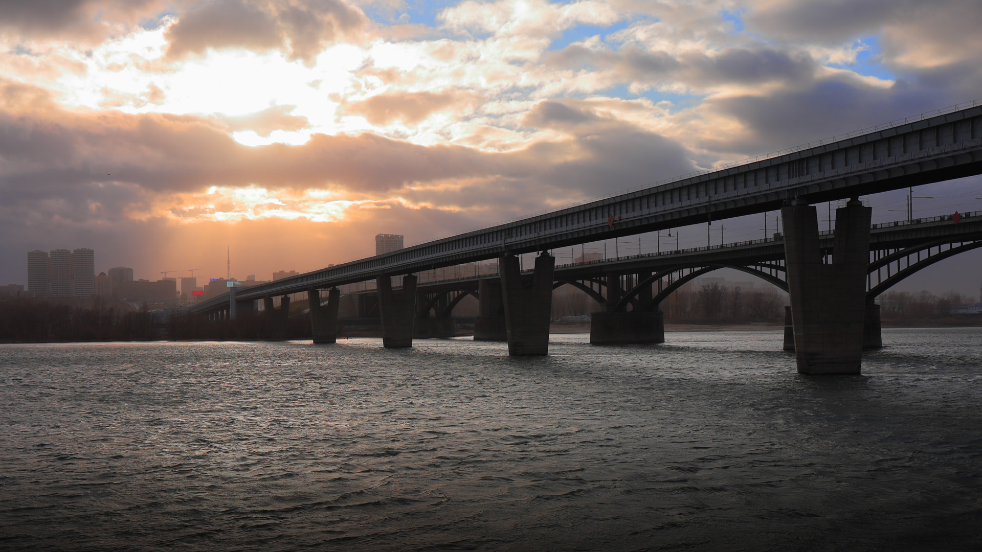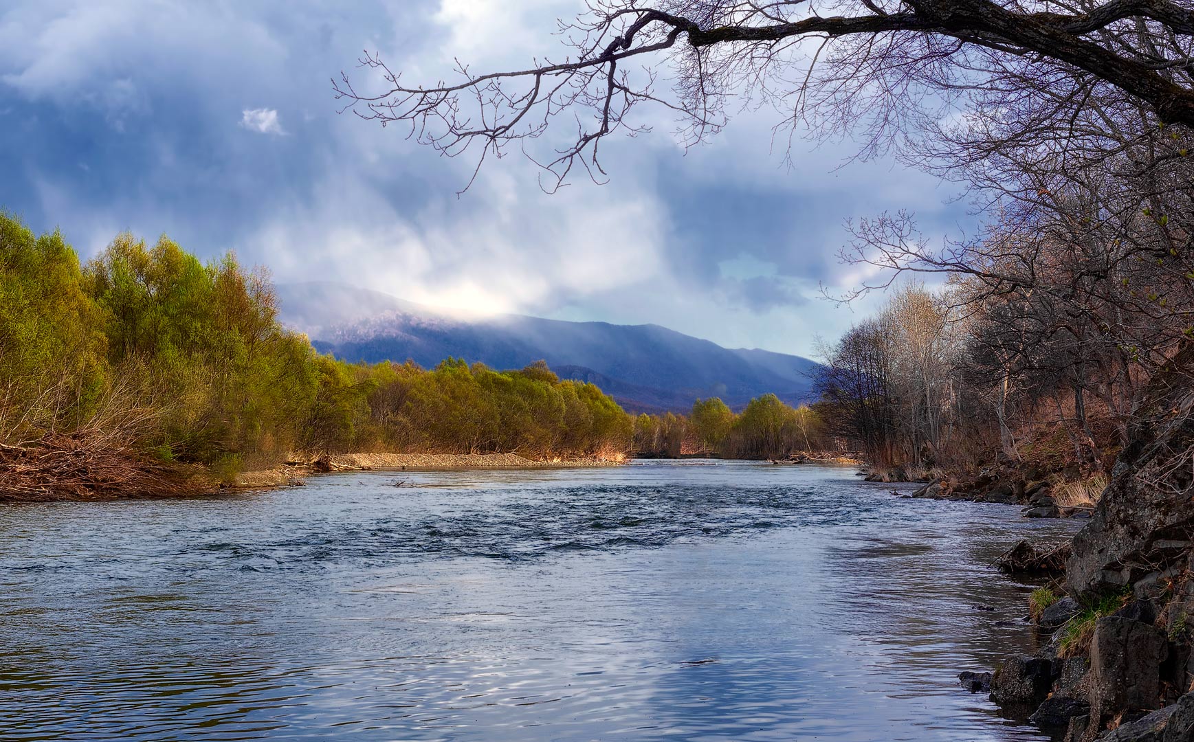 Зимнее утро в Партизанском районе. Приморье. Под грядой гор течёт река Партизанская.
