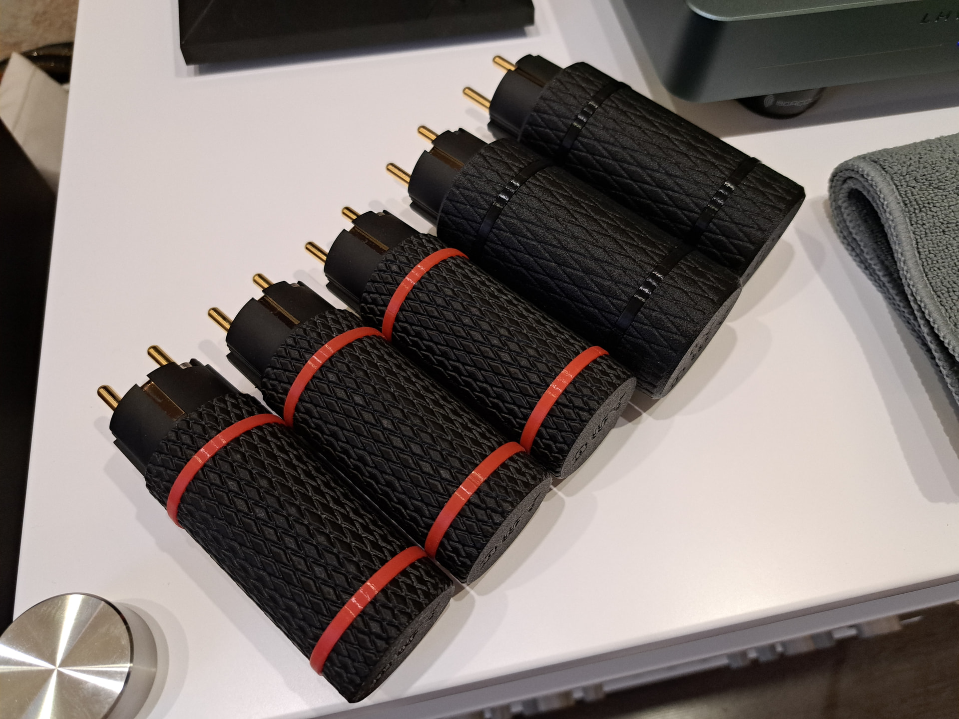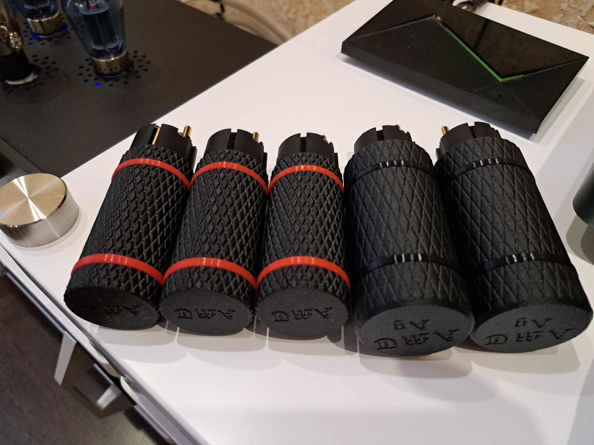 Вилки использую китайские,тут принцип работы такой,что их задача только передать магнитную энергию до проводника в розетке.Можно и из дорогих делать,но всё уже сто раз отслушано,по этому так,как есть.