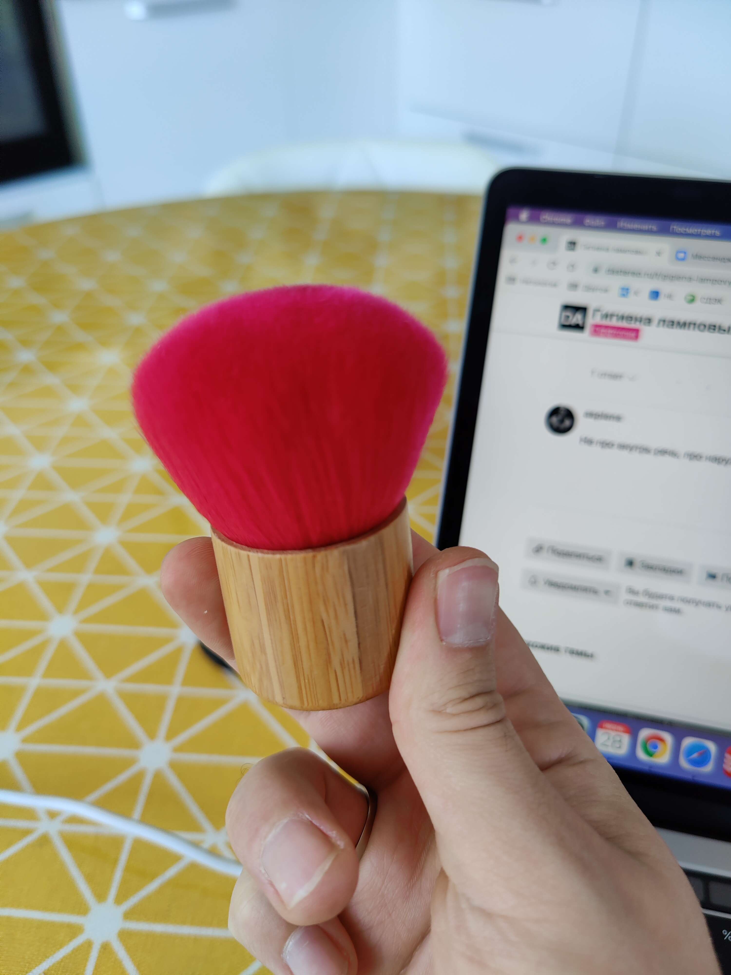 Аналогично,мелкие лампы и пыль между ними этой кисточкой,а большие баллоны вынимаю и протираю тряпочкой со спиртом,ибо на них пыль то ли нагарает,а может сама пыль имеет липкость.
