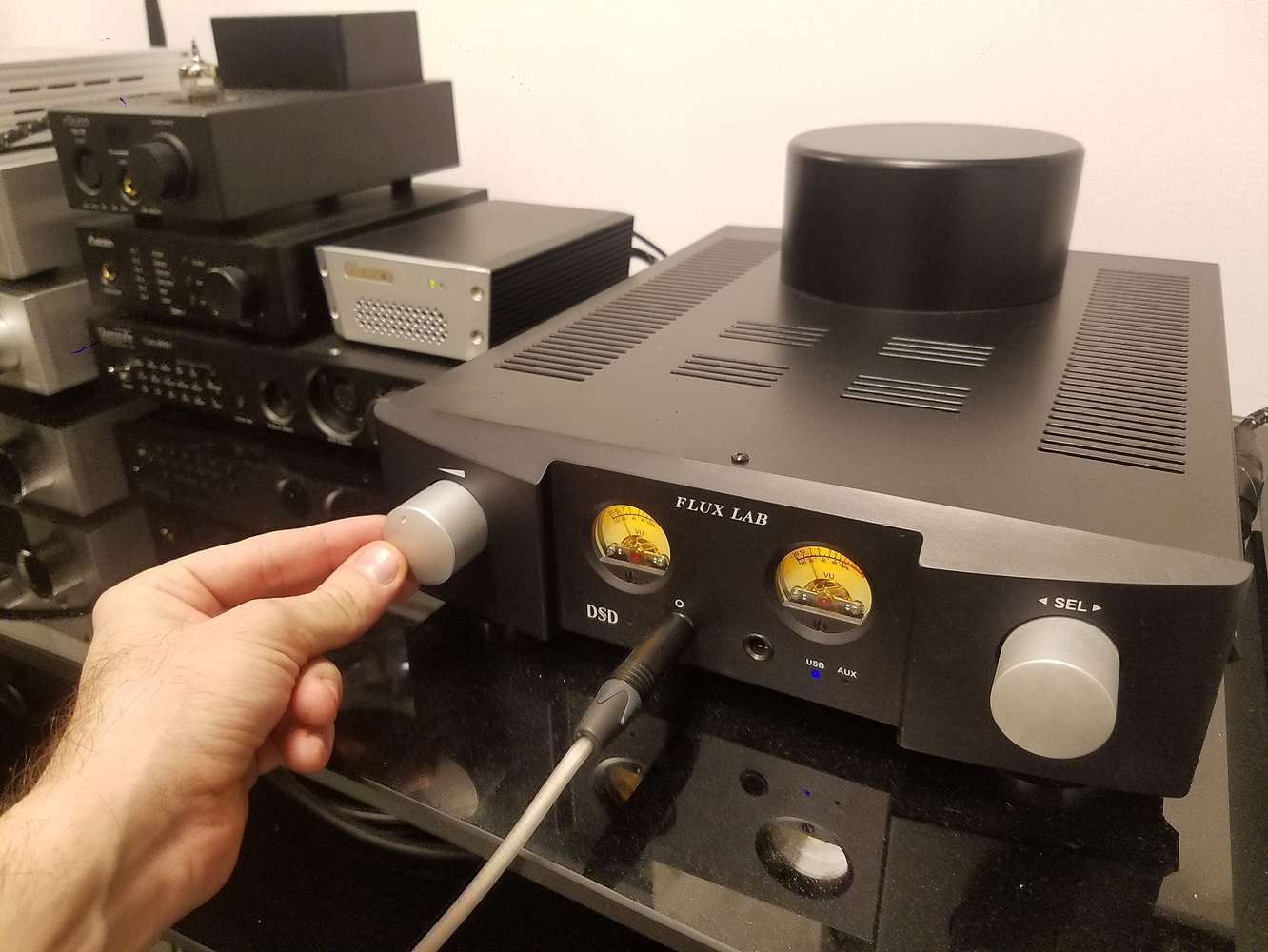 Усилитель Флюкс Лаб солид крайне хорошо работает с наушниками Сусвара на пределе громкости 40% .